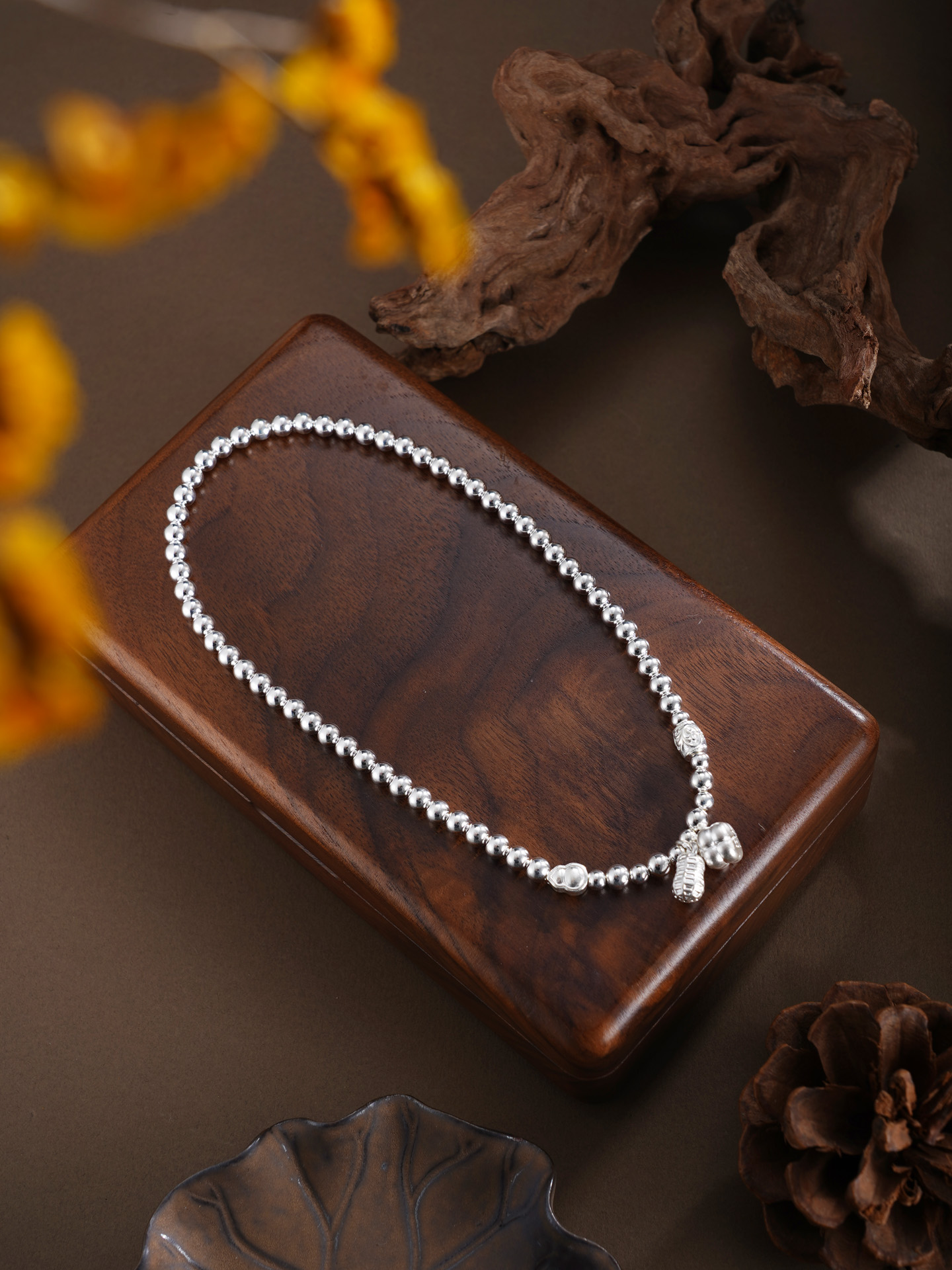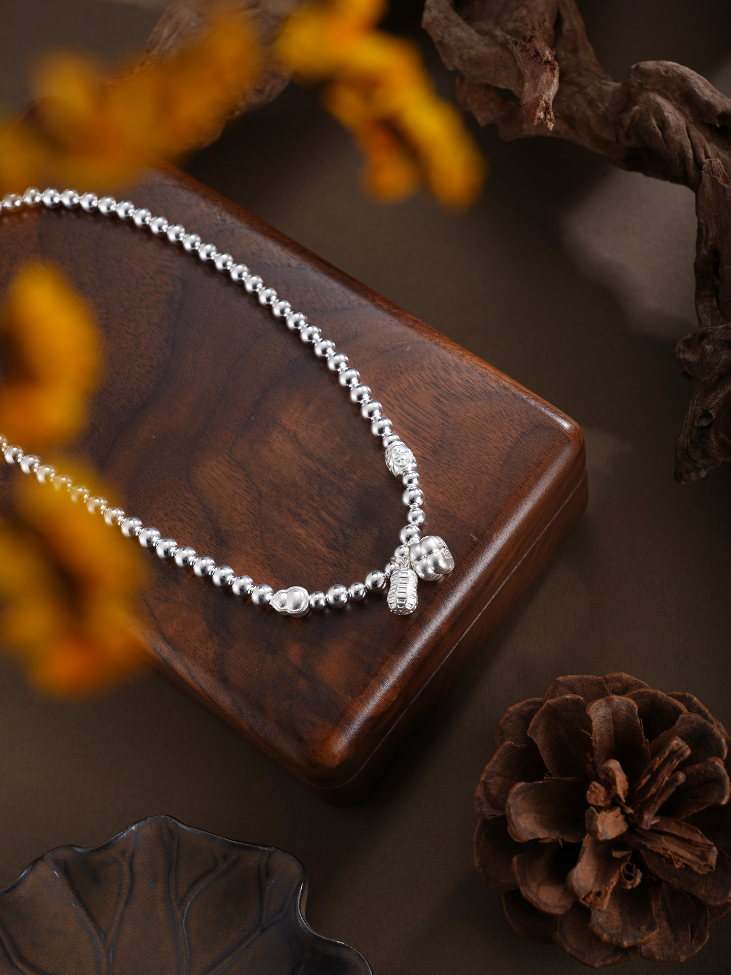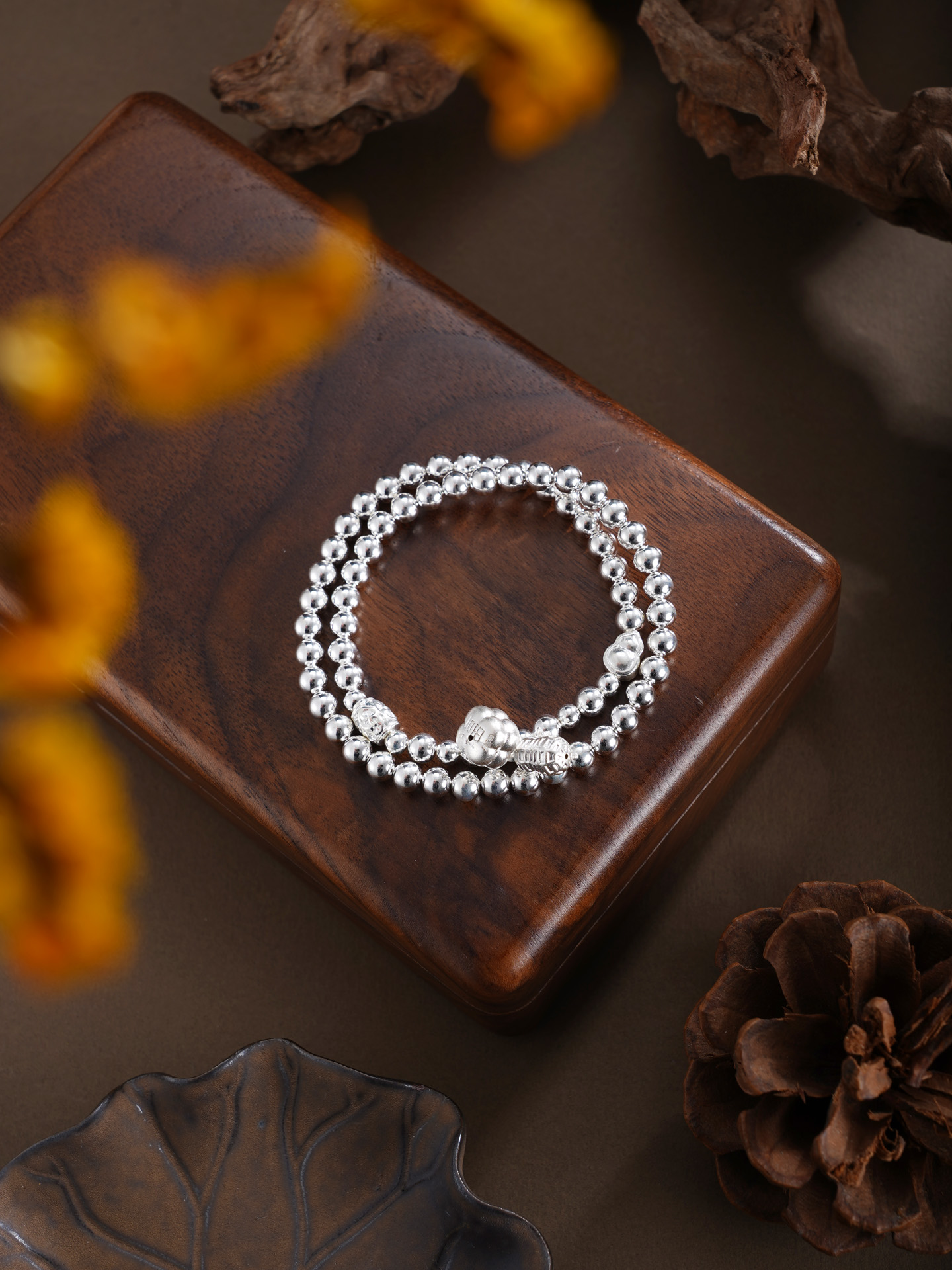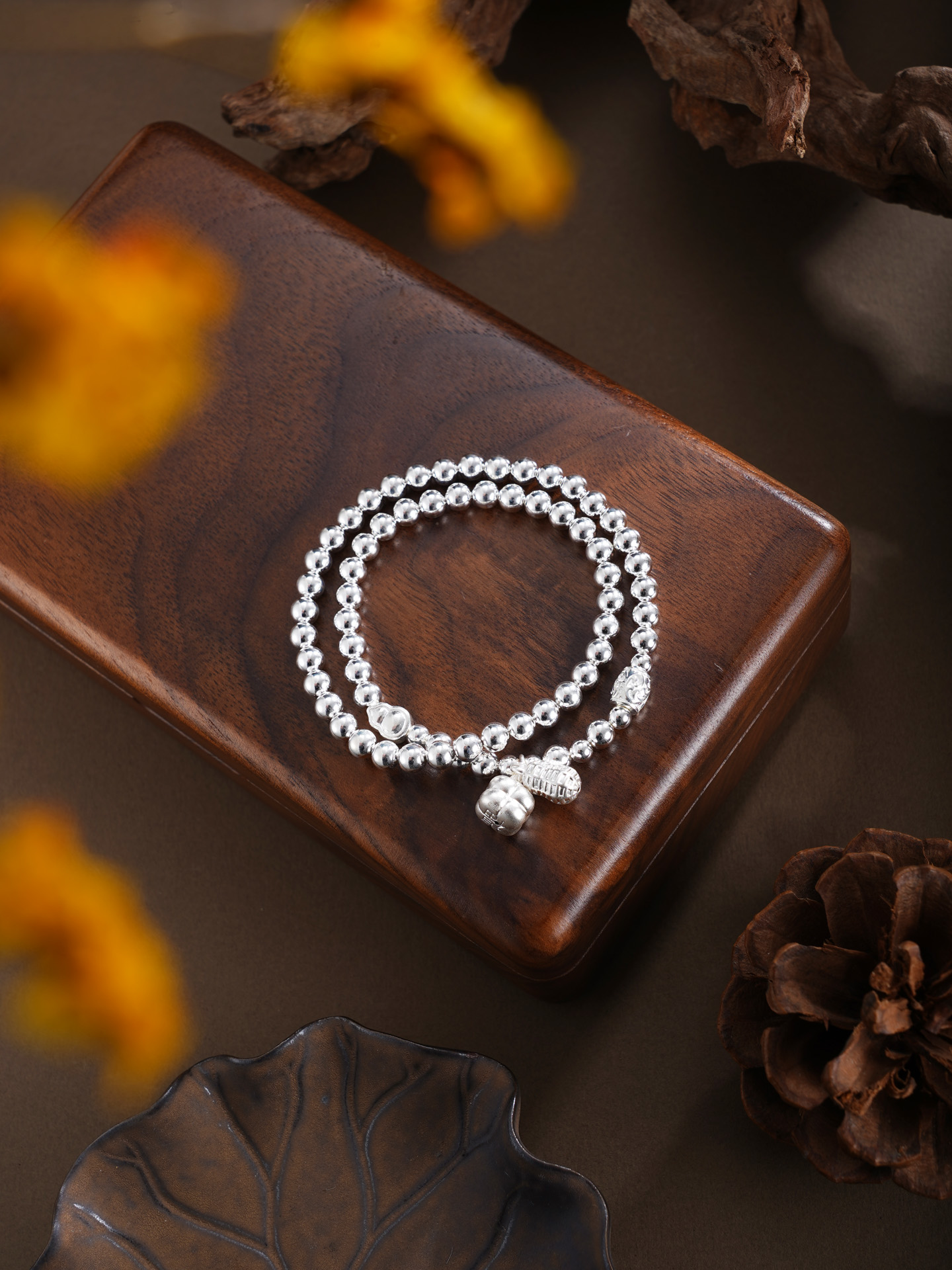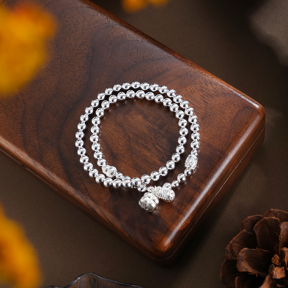 【寓意】:以纯银多圈串珠手链为基,缀以柿子与花生双坠,取“柿柿如意”“好事花生”之谐趣,象征福缘环环相扣,生活圆满、喜乐发生。