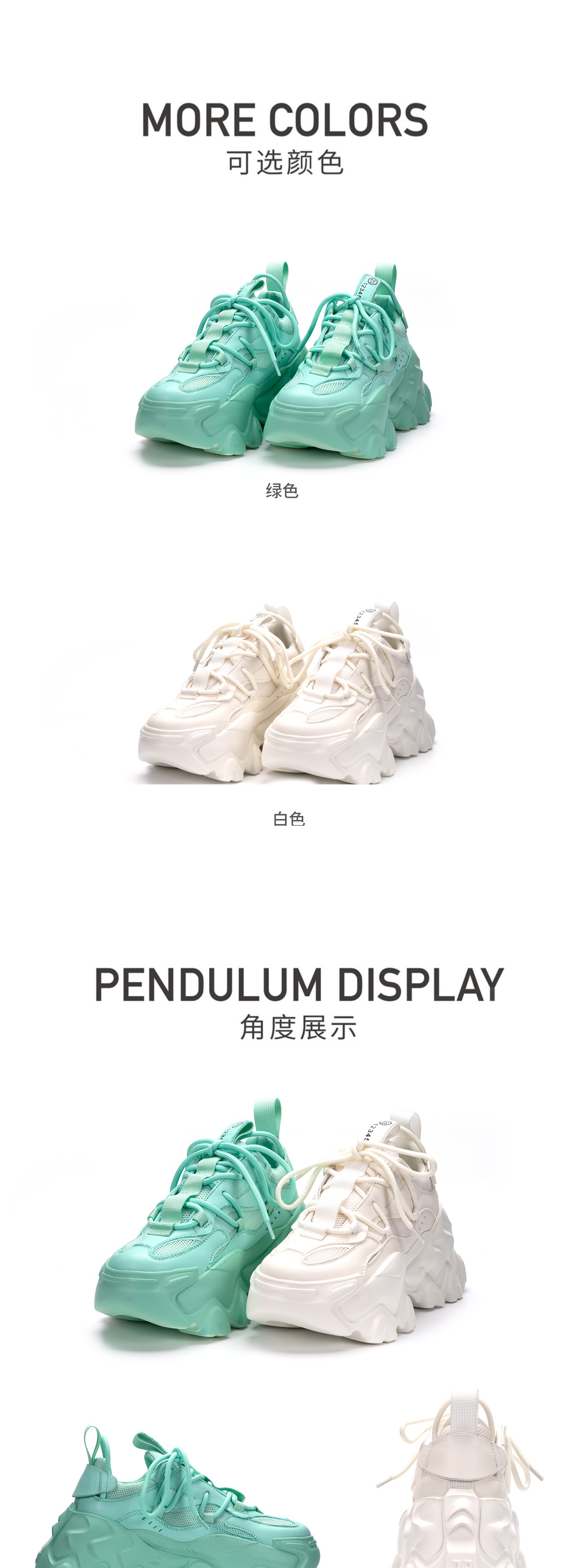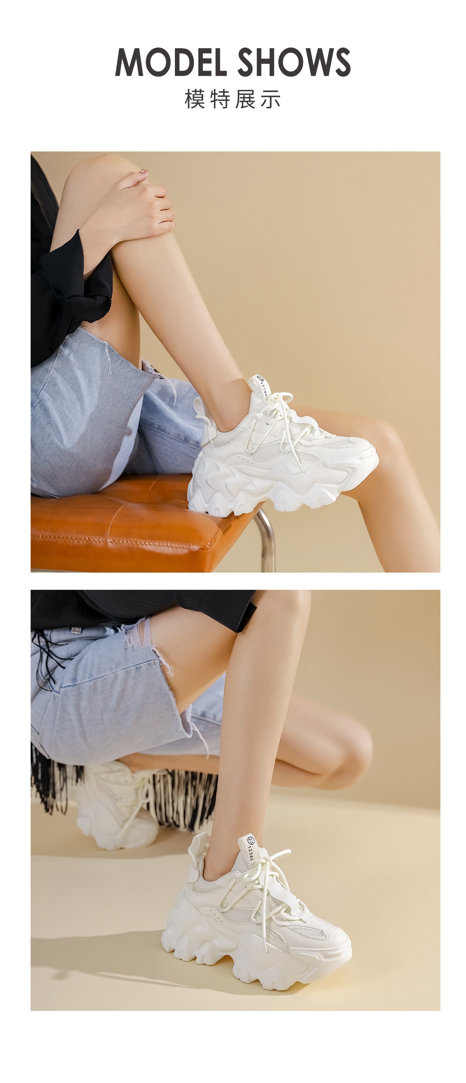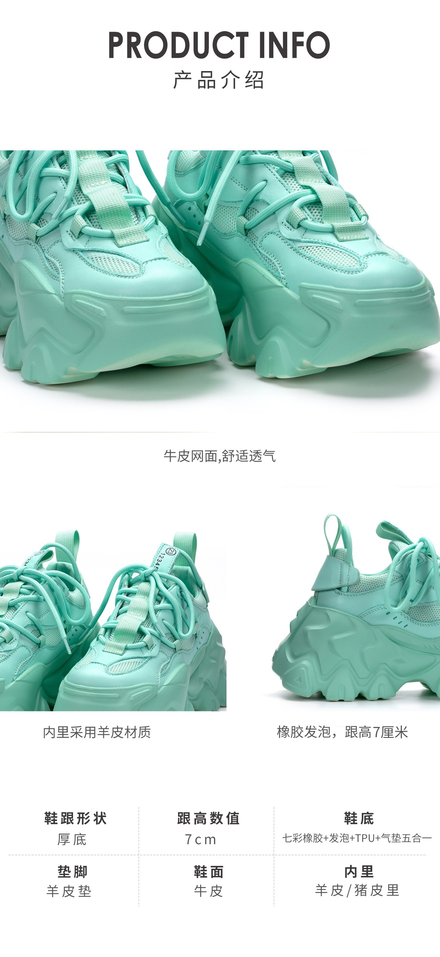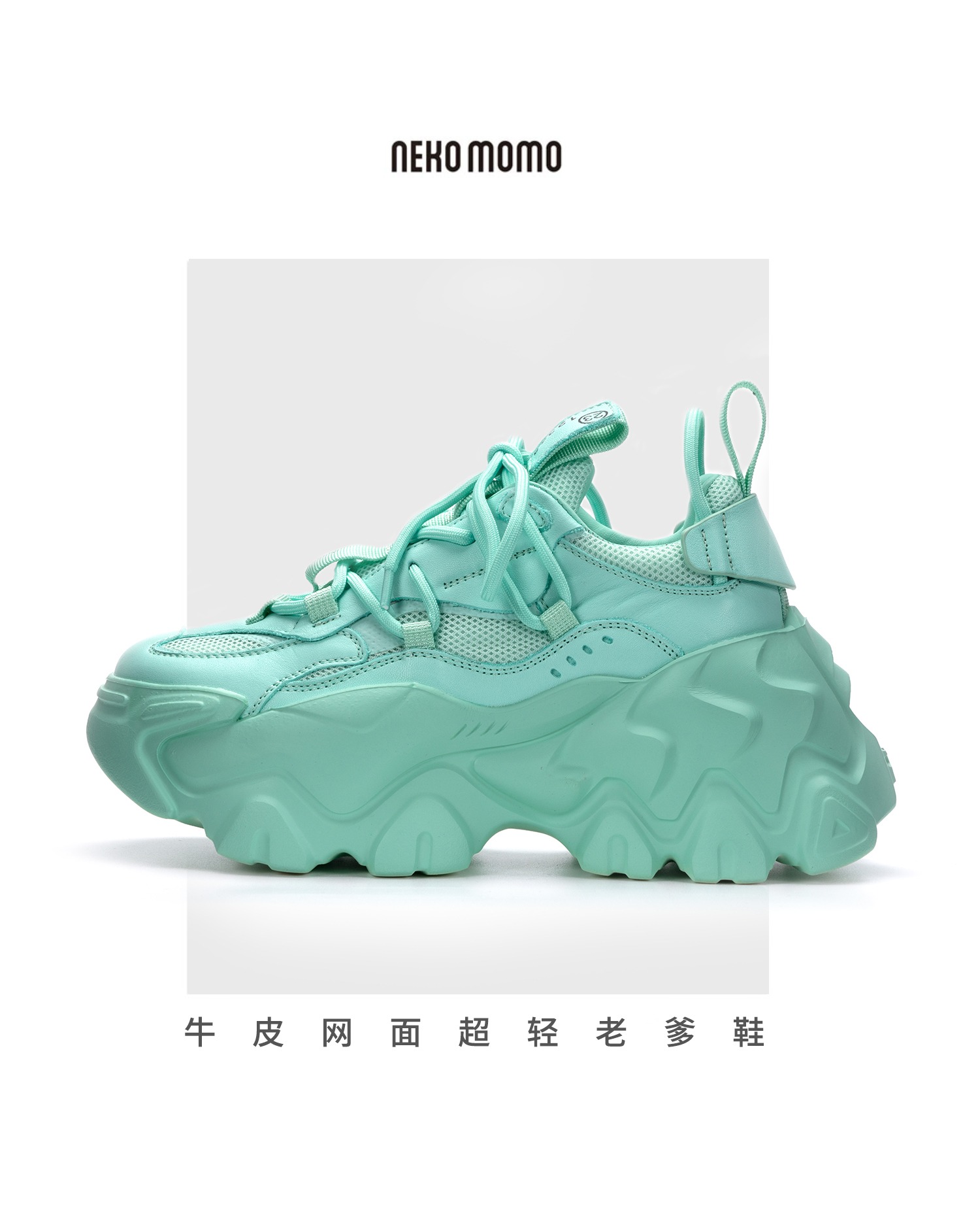nekomomo2023年春季新款牛皮网面超轻厚软底增高品牌休闲老爹鞋M22AM19631女