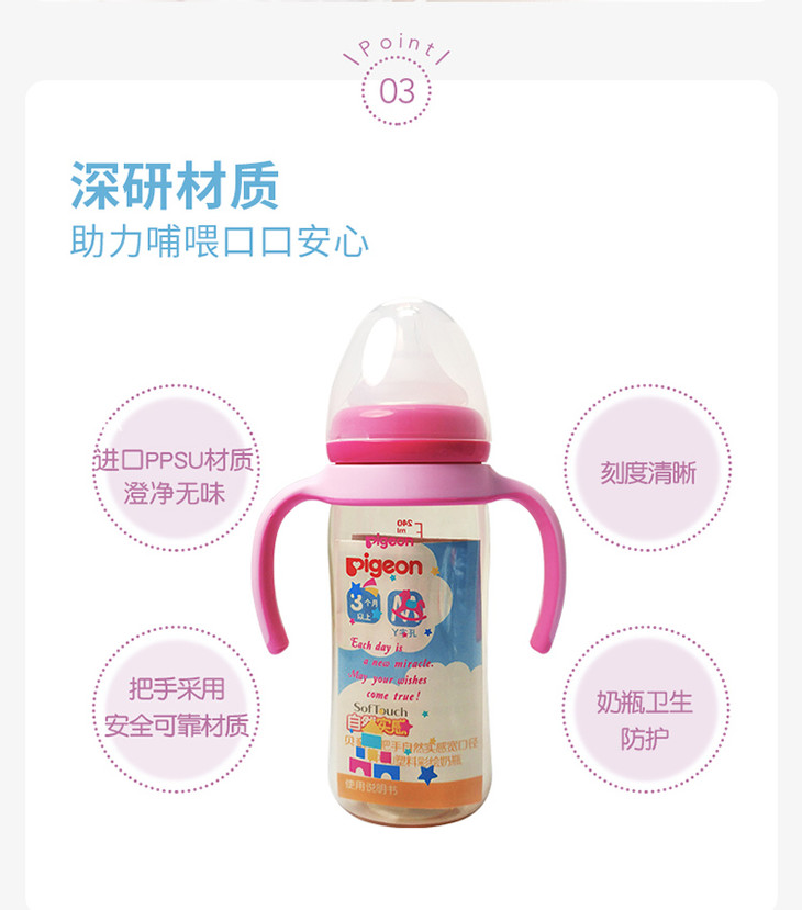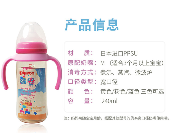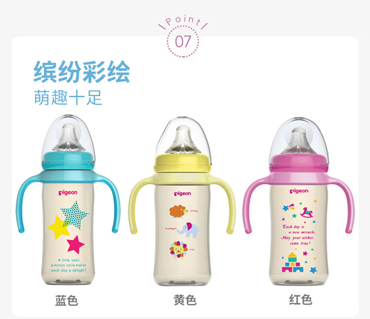 贝亲自然实感宽口径PPSU双把手彩绘奶瓶240ML配M奶嘴