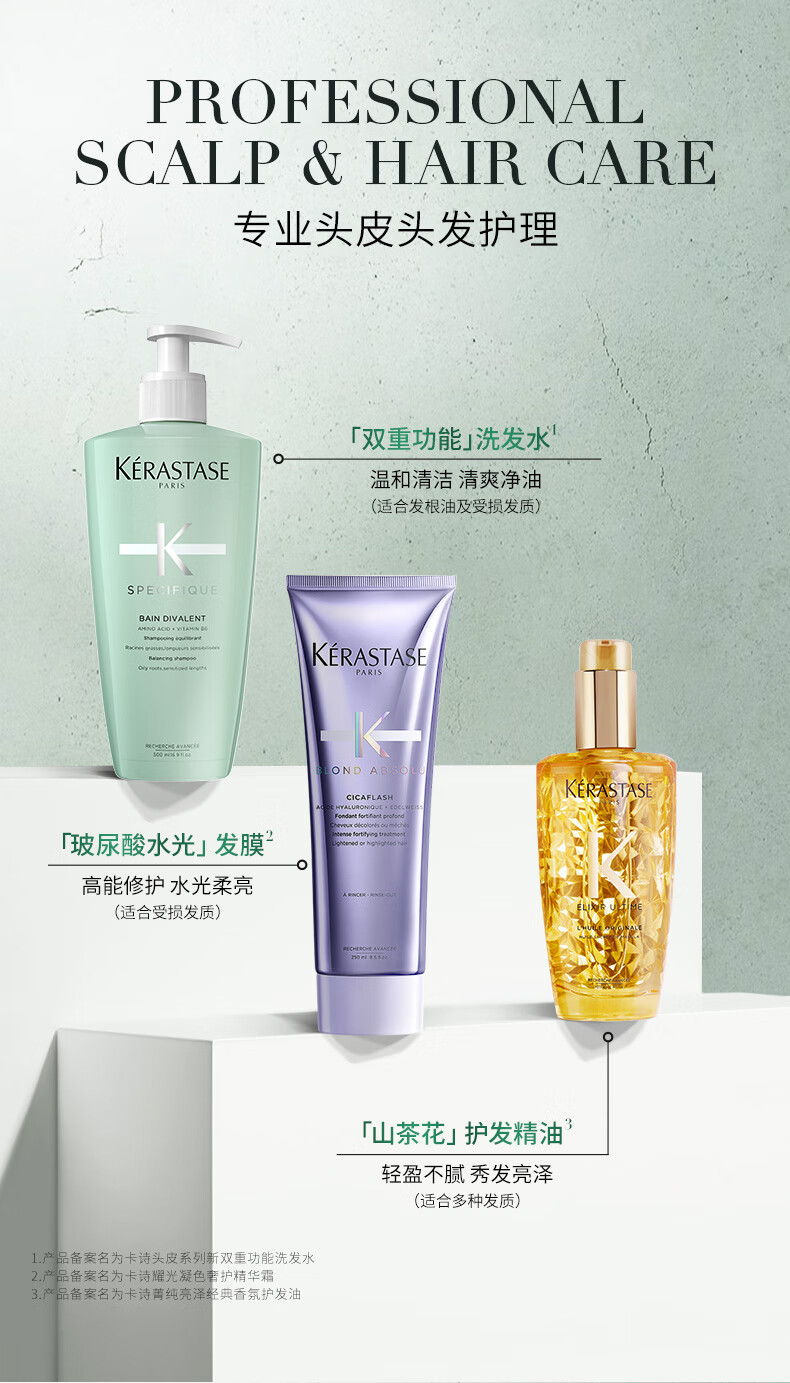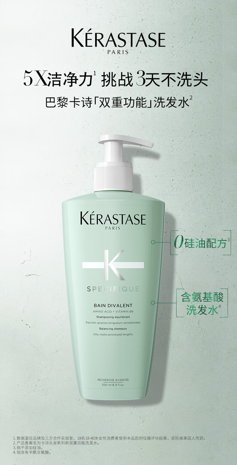 卡诗(KERASTASE)头皮系列新双重功能洗发水 500ml 氨基酸 无硅油 温和清洁 清爽控油蓬松
