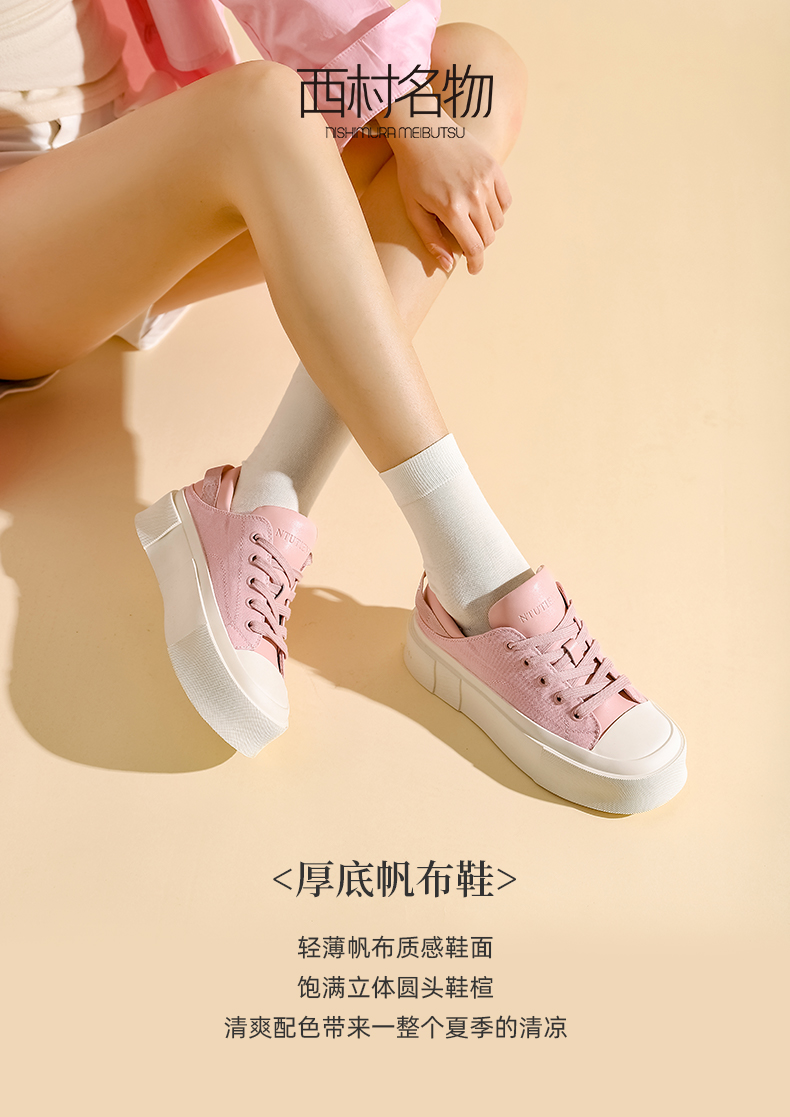 西村名物2023年春季新款休闲厚底板鞋百搭小白鞋增高帆布鞋33301