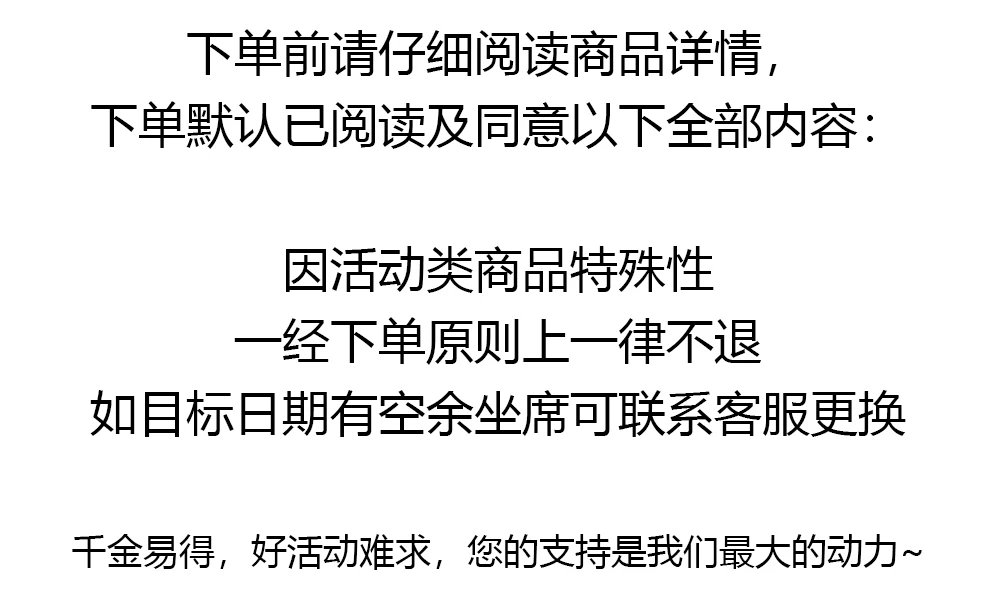 1、8组家庭成团,出行前15天告知是否成团。如不成团,5个工作日内退还所交全额费用。