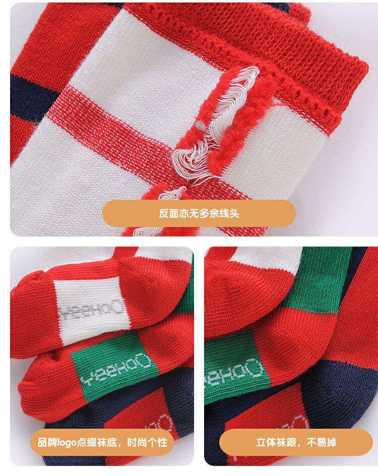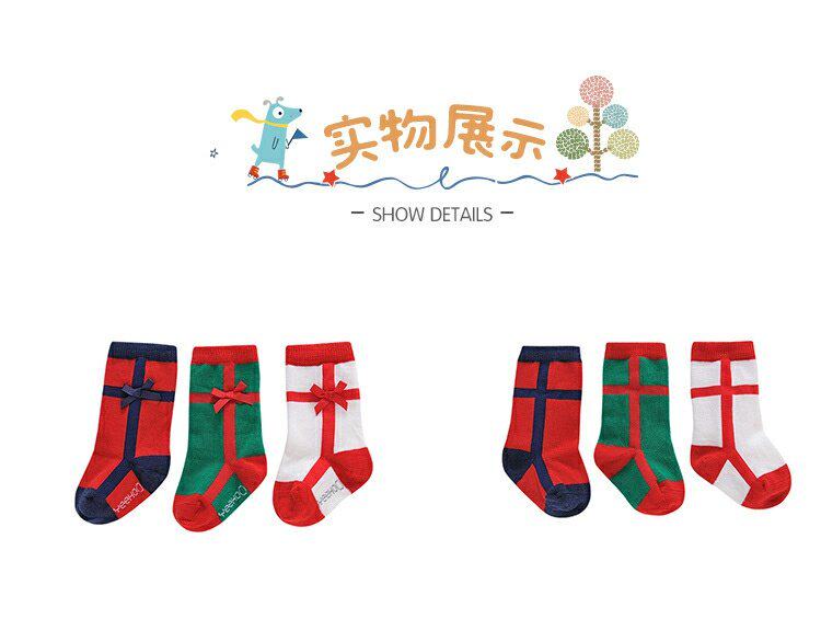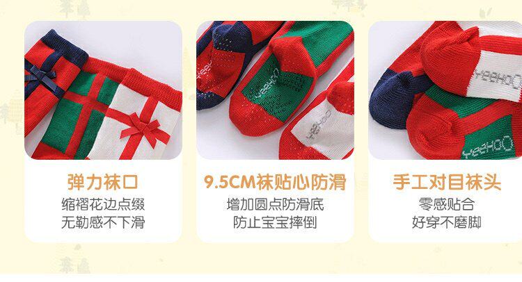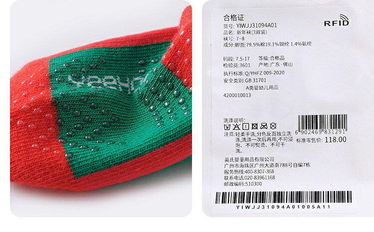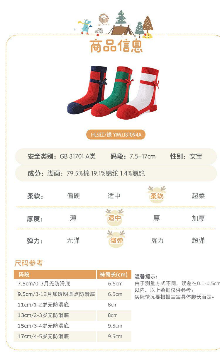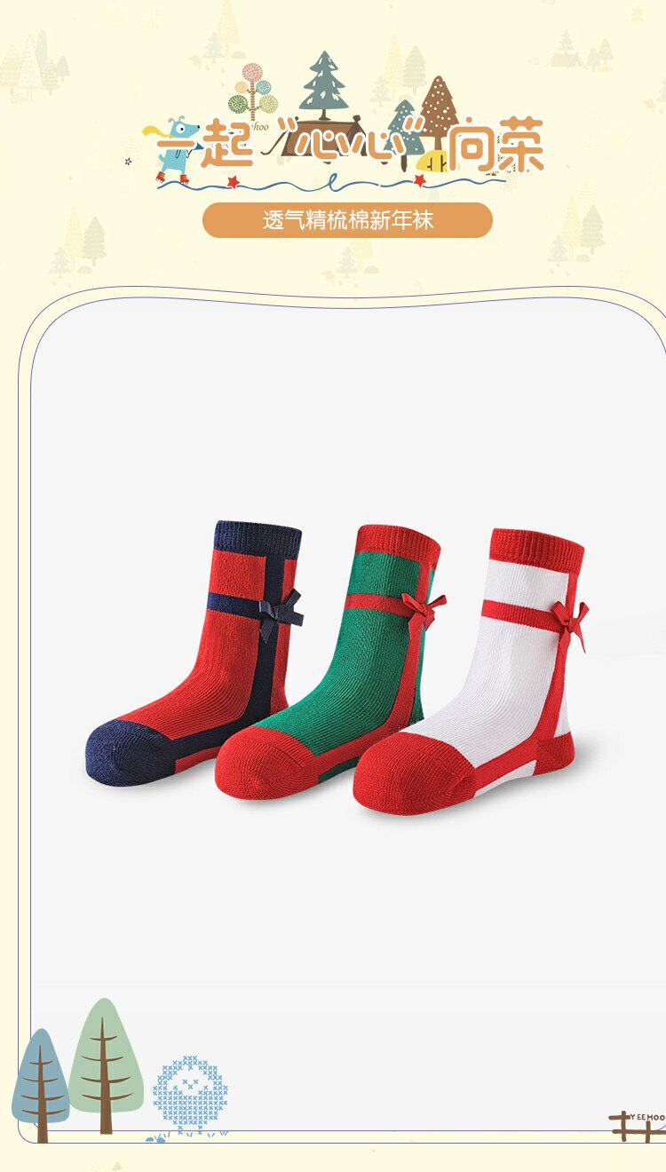 英氏婴儿袜子儿童女新年袜秋冬款3双装中筒袜YIWJJ31094A