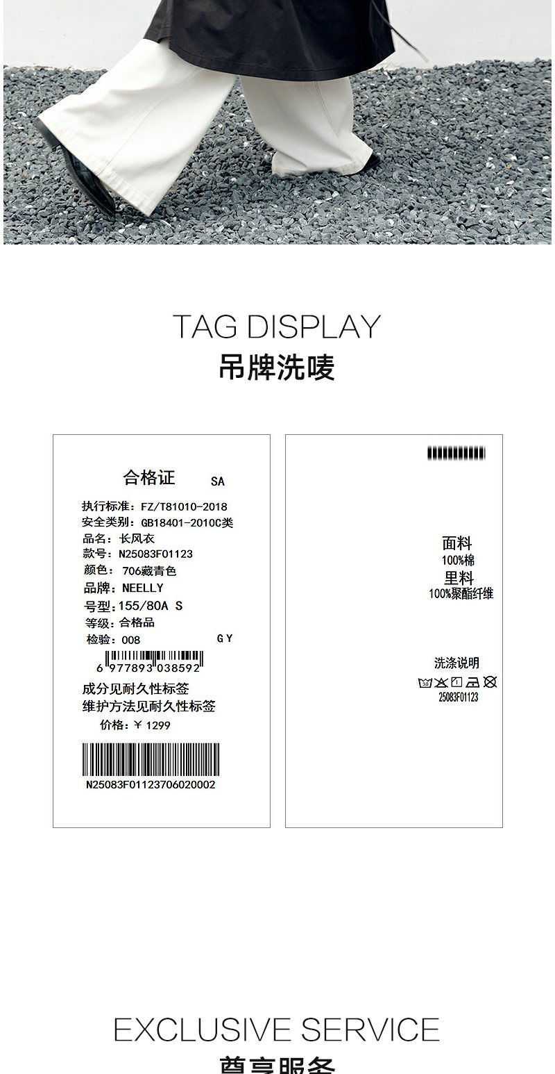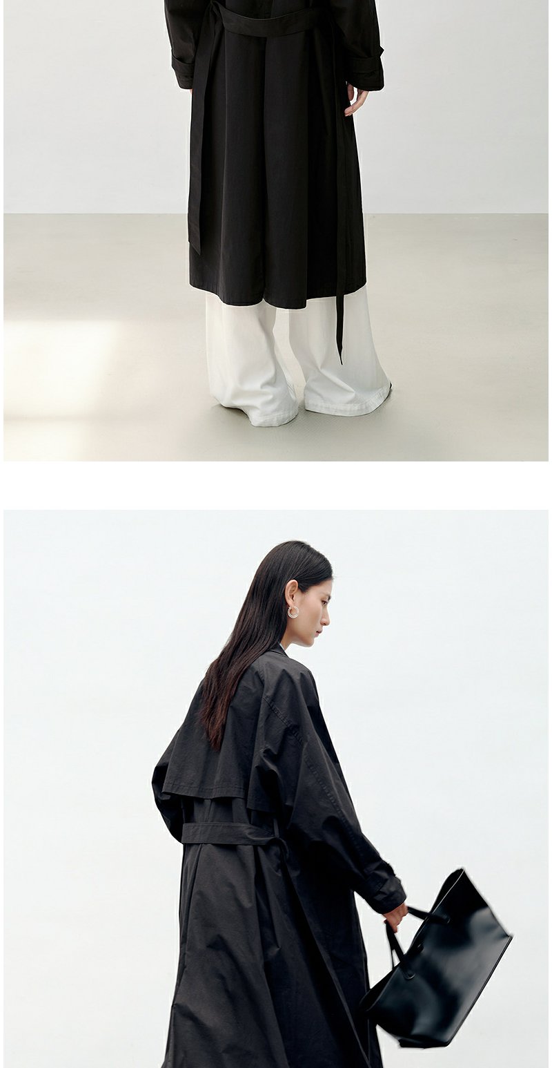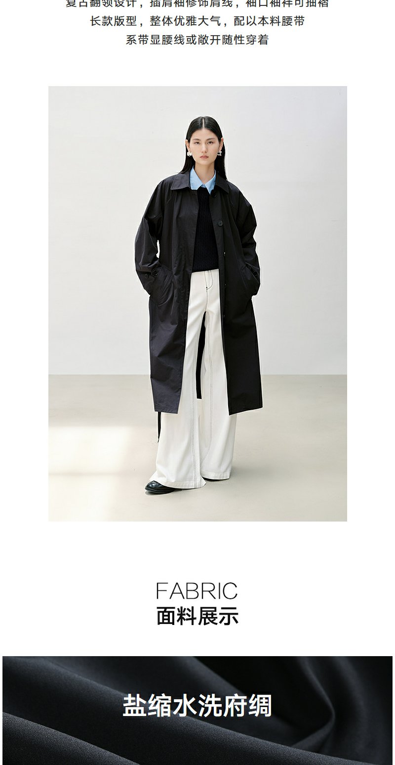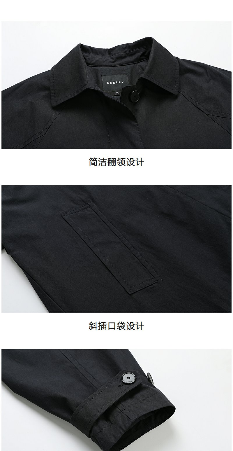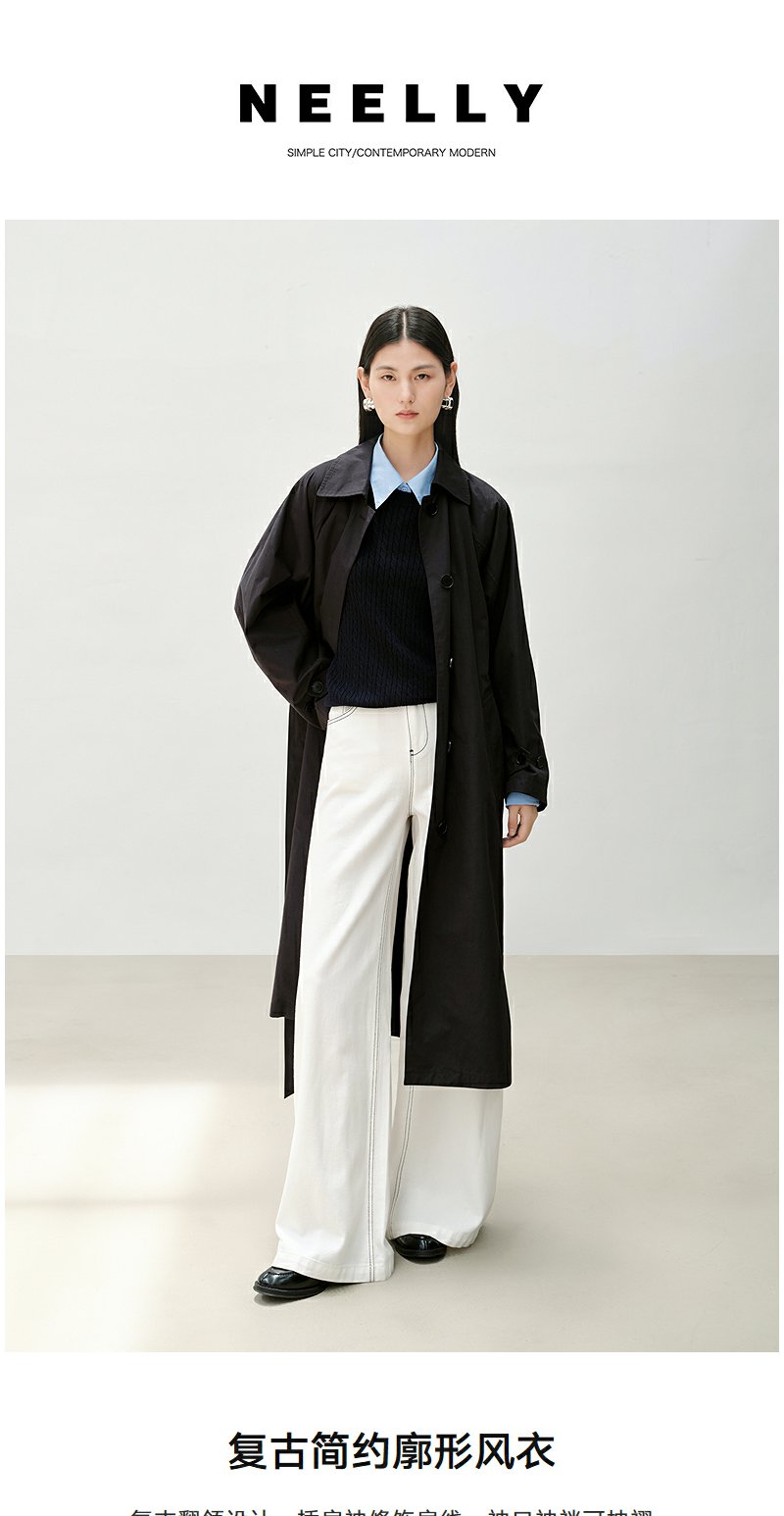 NEELLY纳俪商场同款秋季新款复古简约廓形长风衣女舒适随性外套N25083F01123