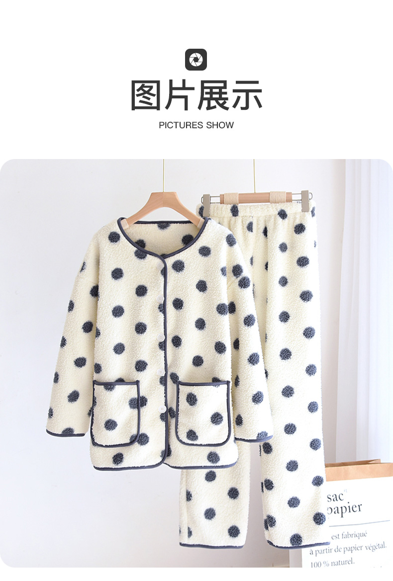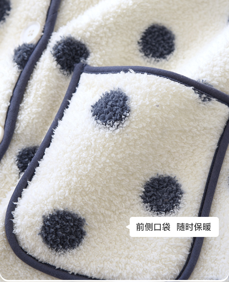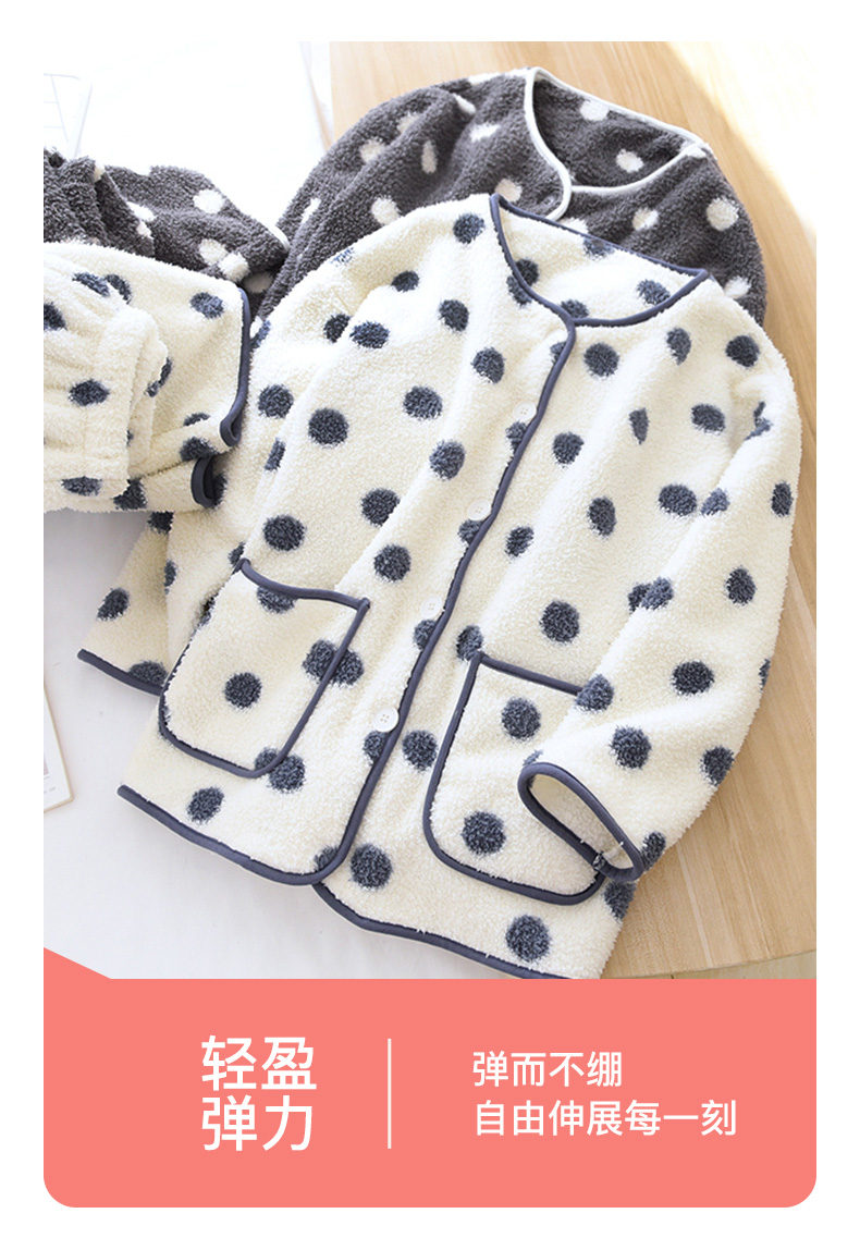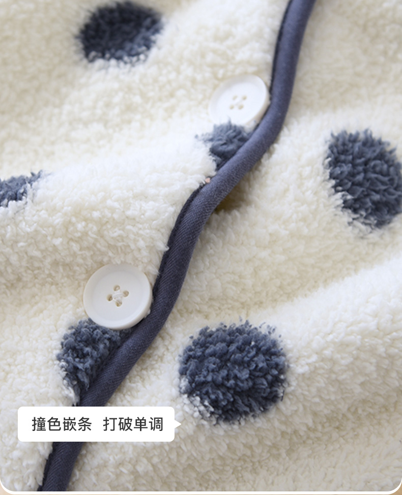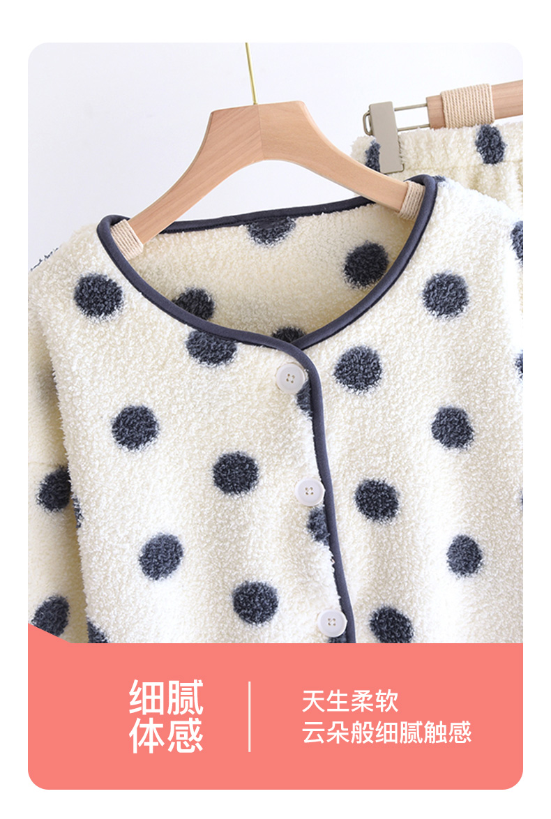 I'd爱帝女士波点摇粒绒撞色包边长袖家居服套装