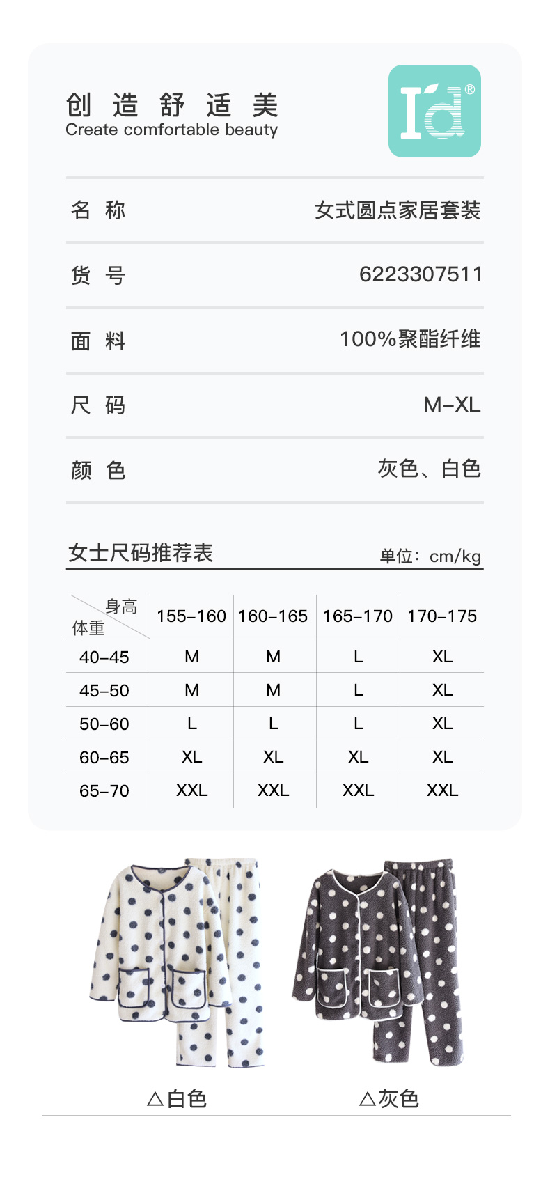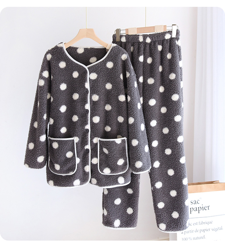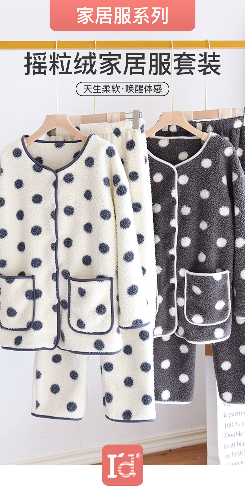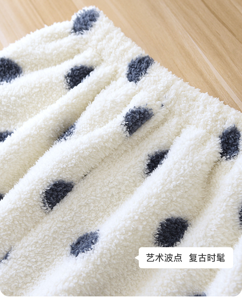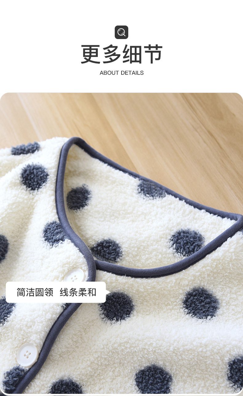 I'd爱帝女士波点摇粒绒撞色包边长袖家居服套装