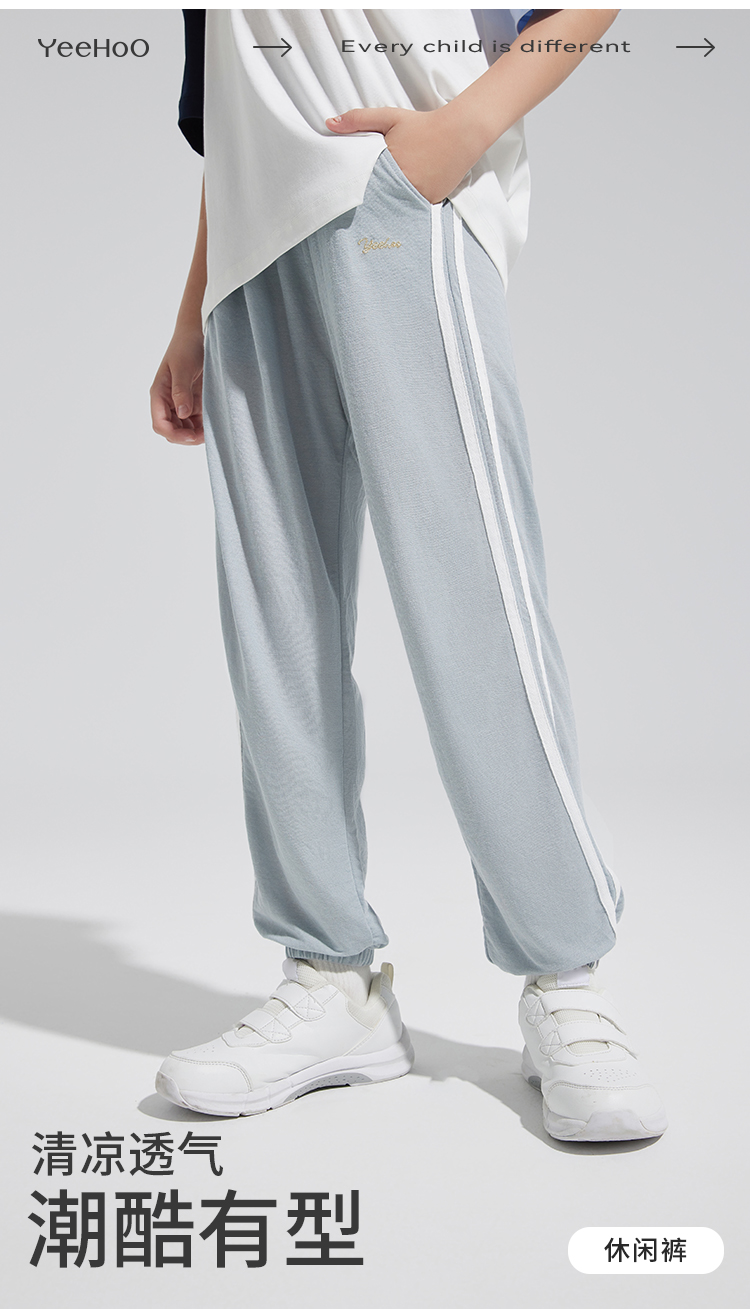 【英氏】【110-165】男童清凉透气休闲裤儿童防蚊裤