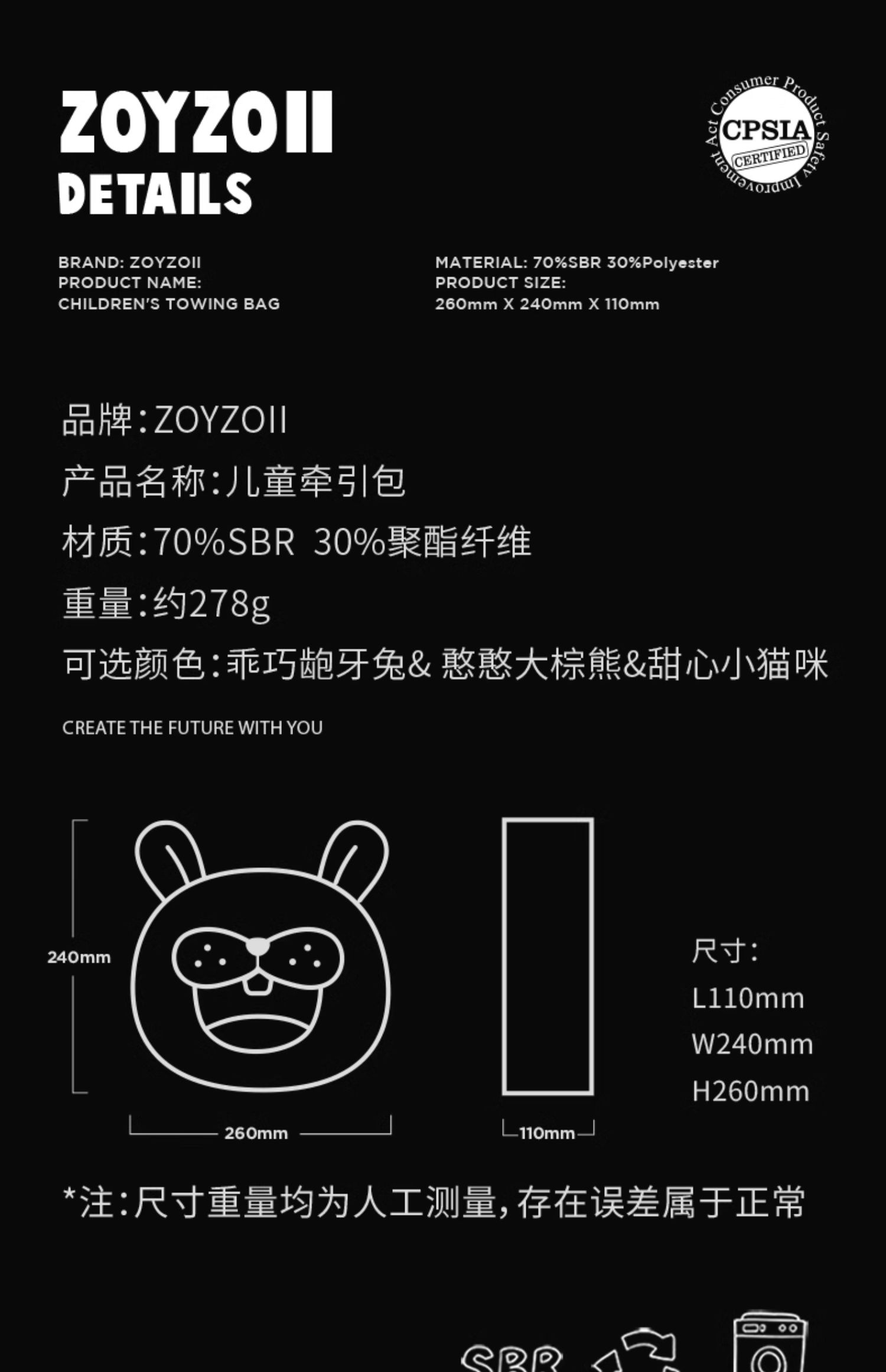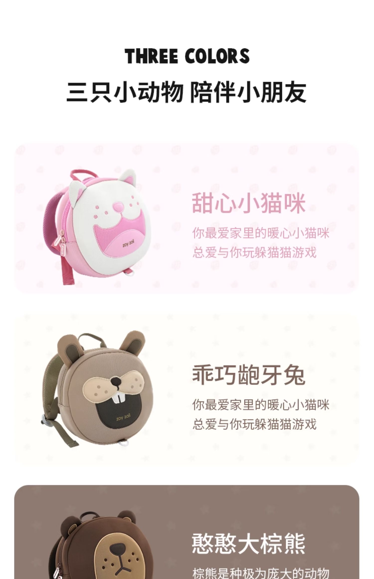 zoyzoii B32 动物牵引包 儿童书包女孩幼儿园书包男童牵引防走失可爱外出宝宝背包