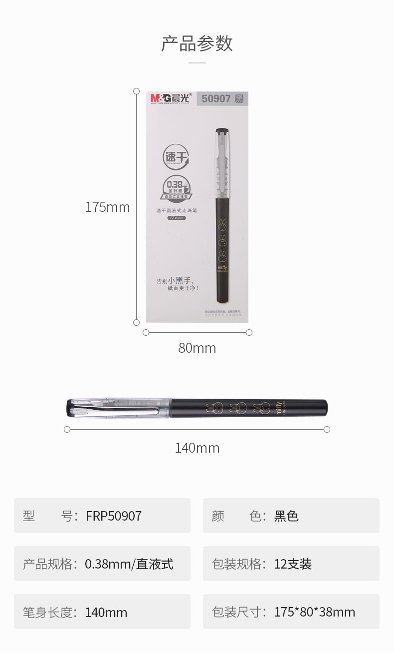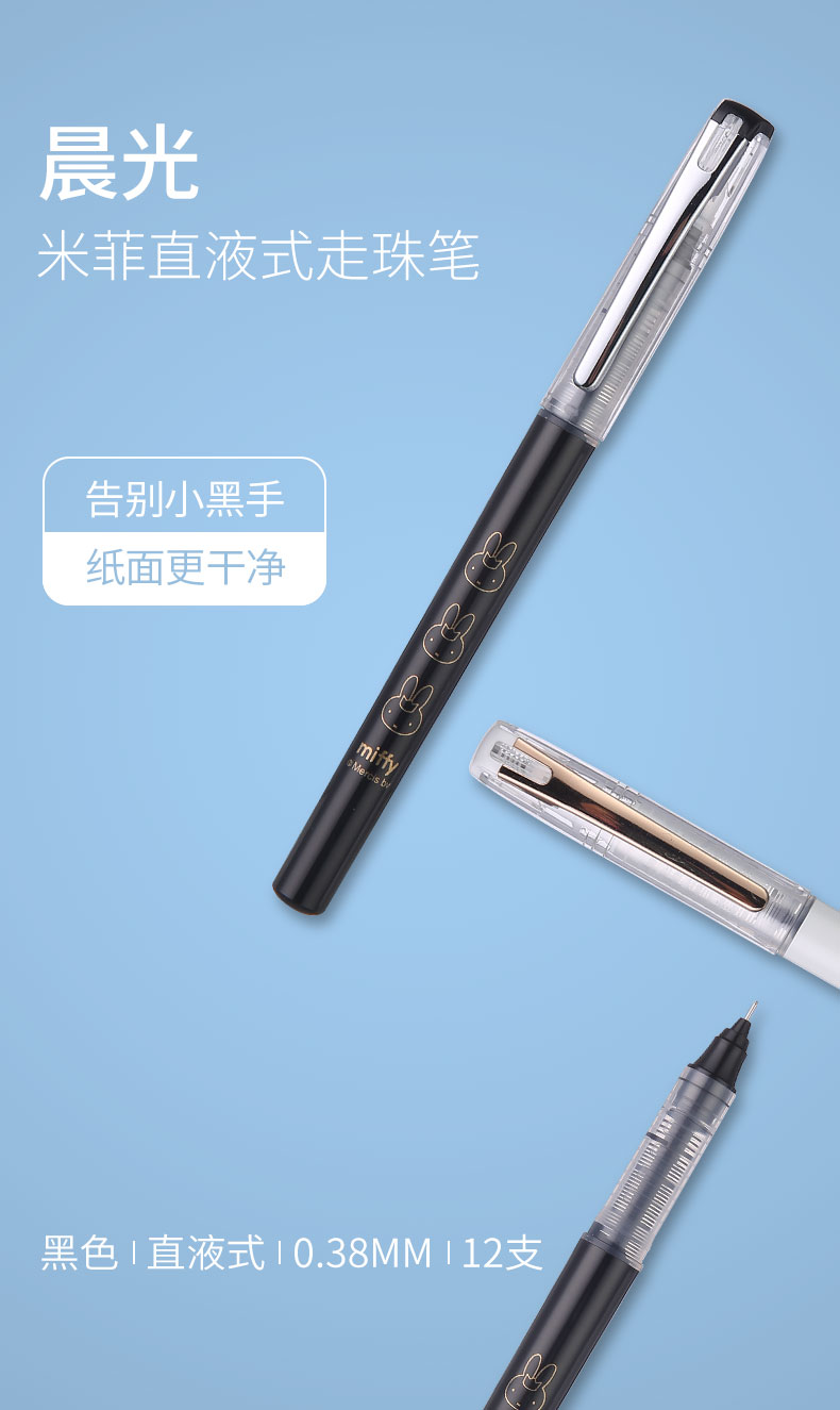 晨光直液式miffy的纪念日FRP50907黑0.38中性笔学用办公书写会议
