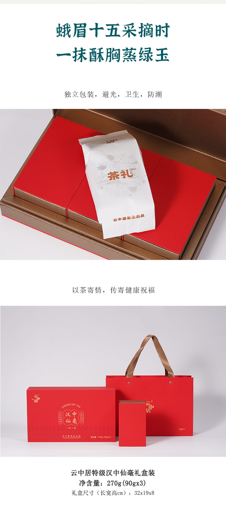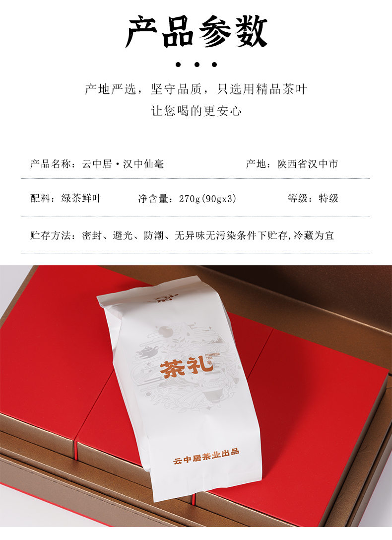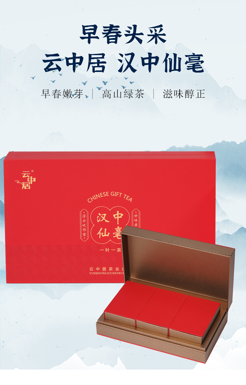 云中居茗悦系列特级汉中仙毫礼盒装270g(90g×3)