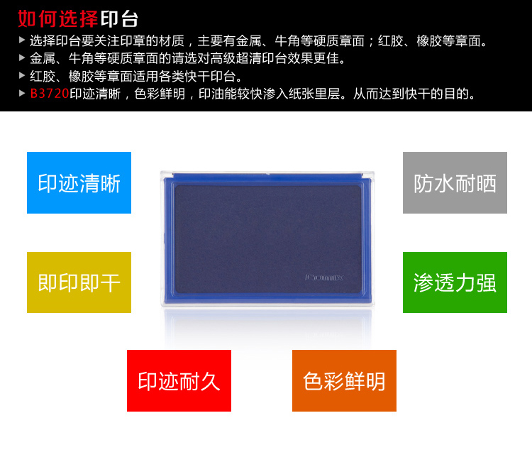 齐心大长方形快干印台B3720/红色