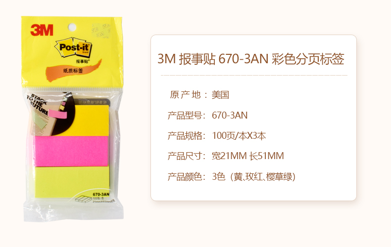 3M报事贴670-3AN便利贴爱心贴学生办公用