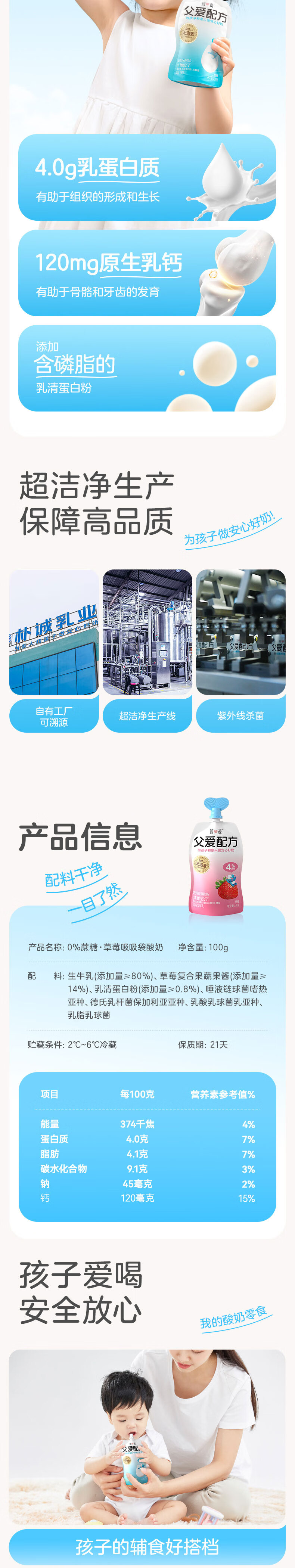 简爱(乳品) 父爱配方 4%蔗糖果蔬吸吸酸奶 风味发酵乳 100g/袋
