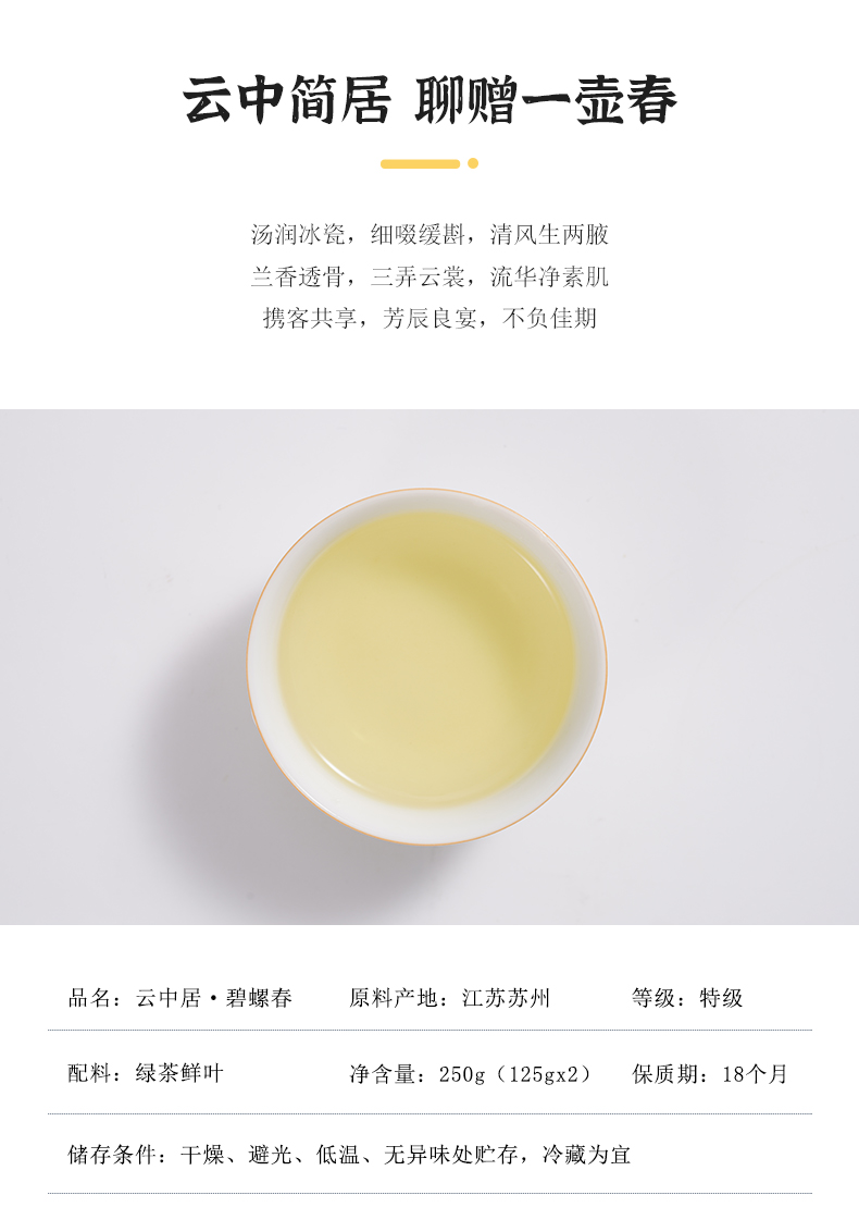 云中居云醉系列特级碧螺春礼盒装250g(125g×2)