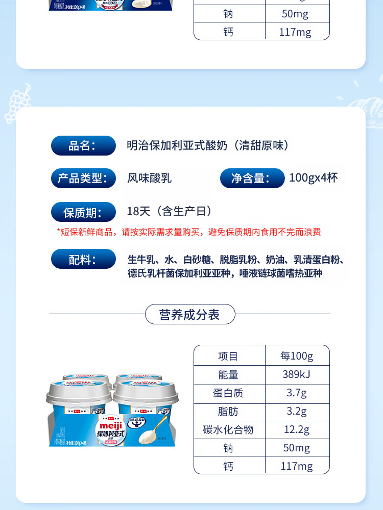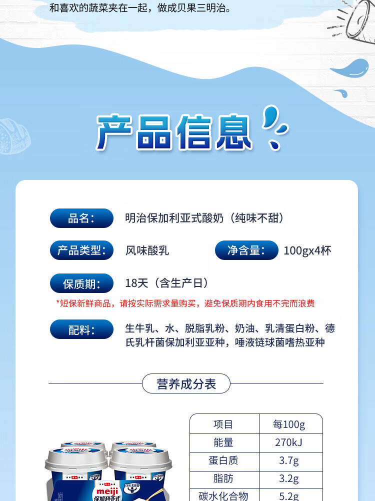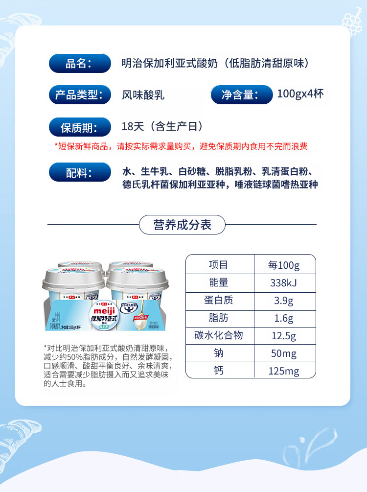 明治 风味酸乳(清甜原味) 100g*4