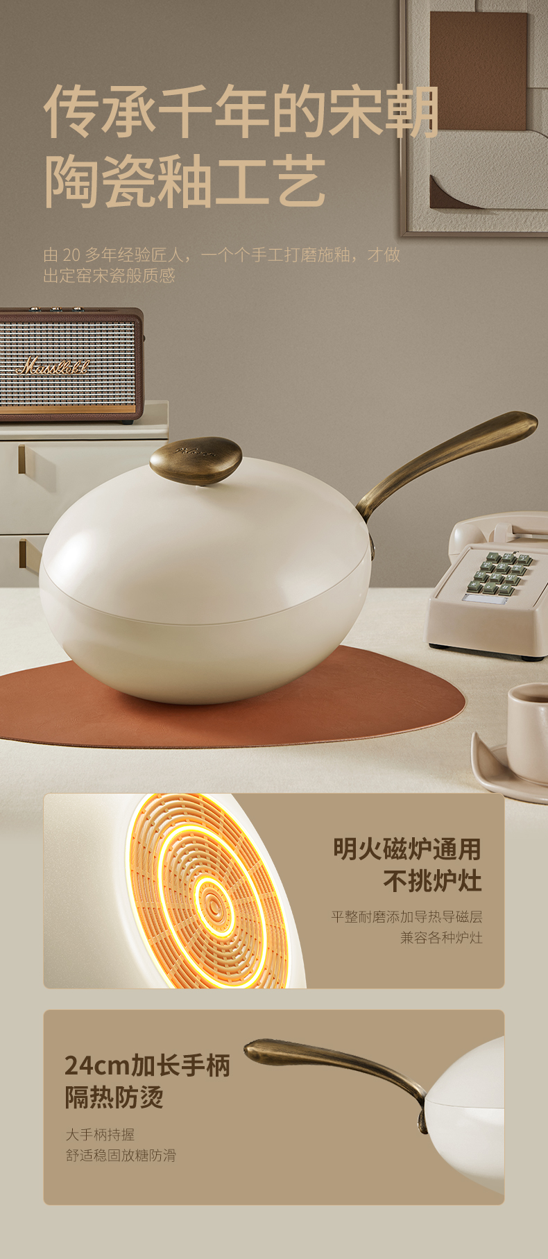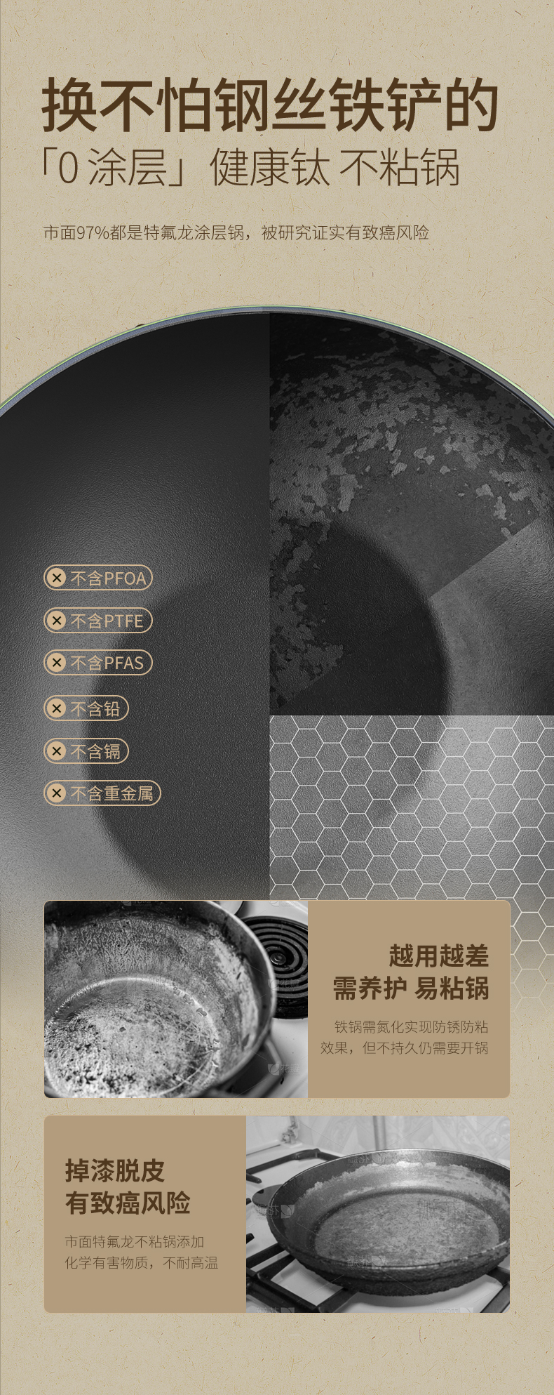 VELOSAN/温仑山 无涂层鹅卵石不粘炒锅32cm 不粘锅炒锅