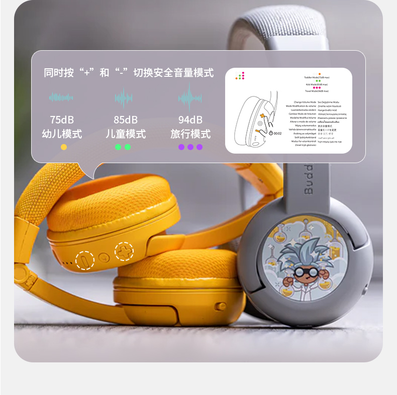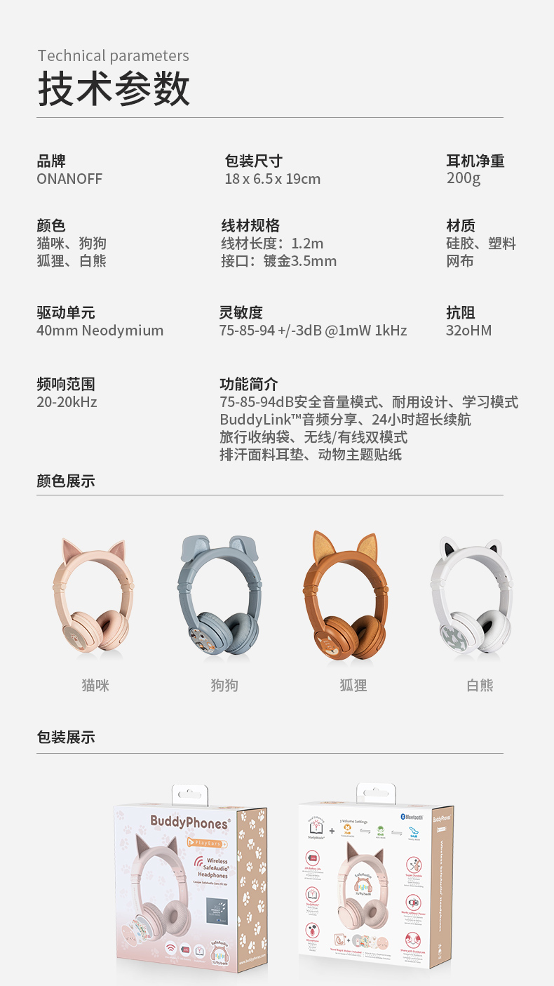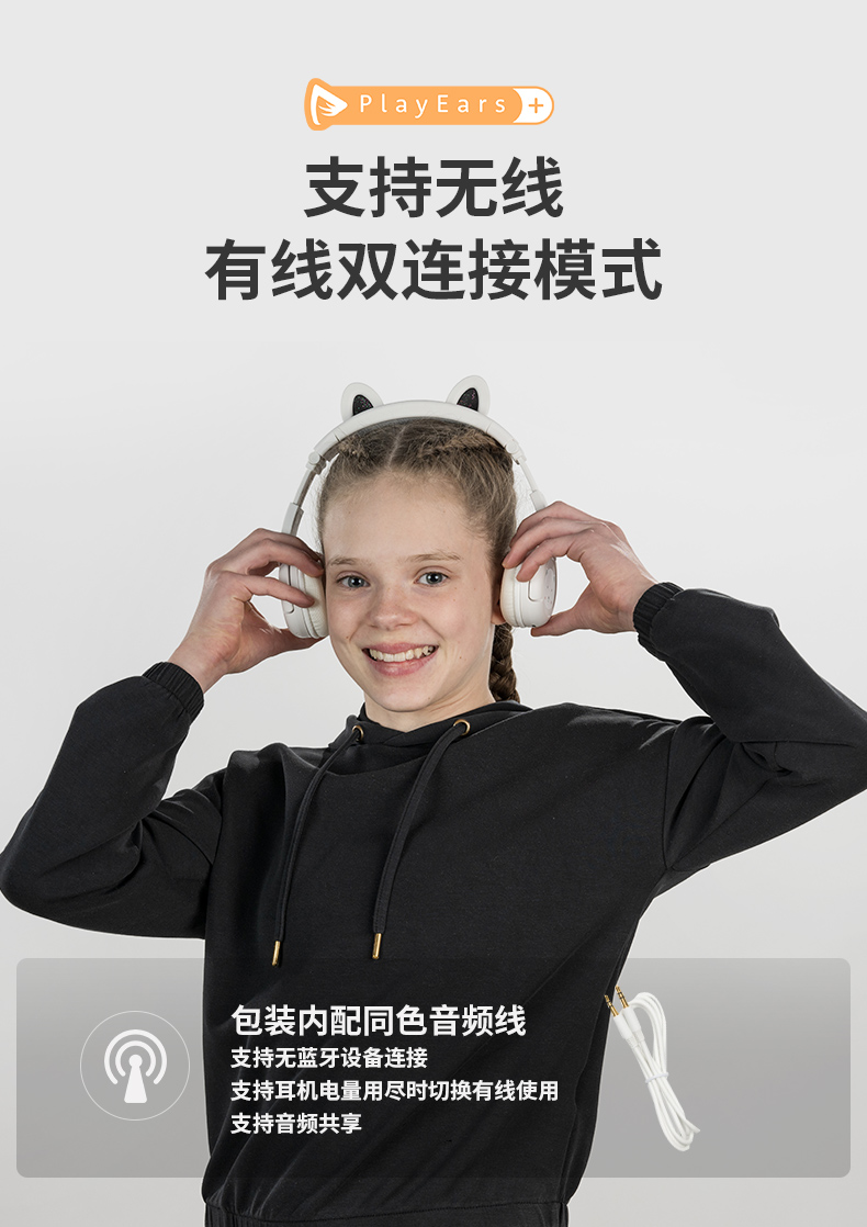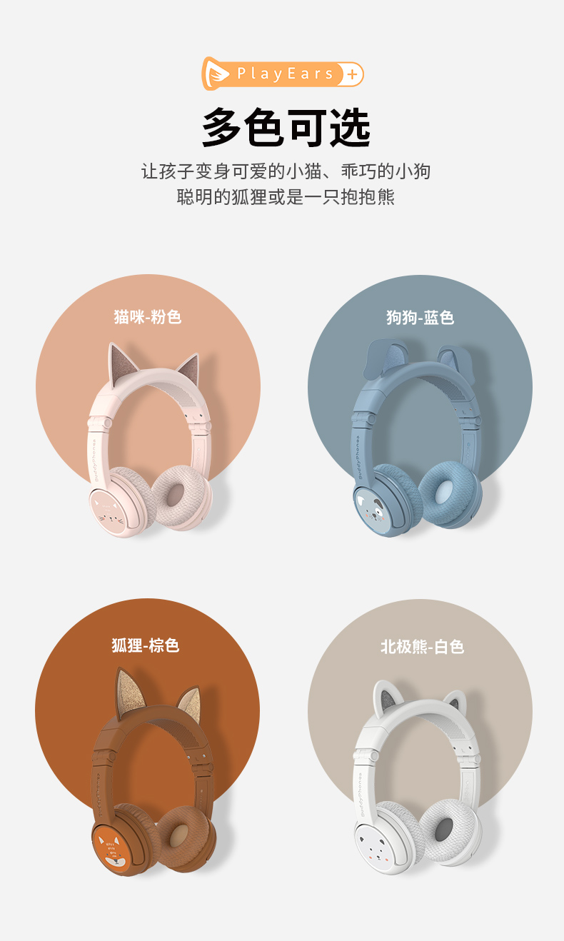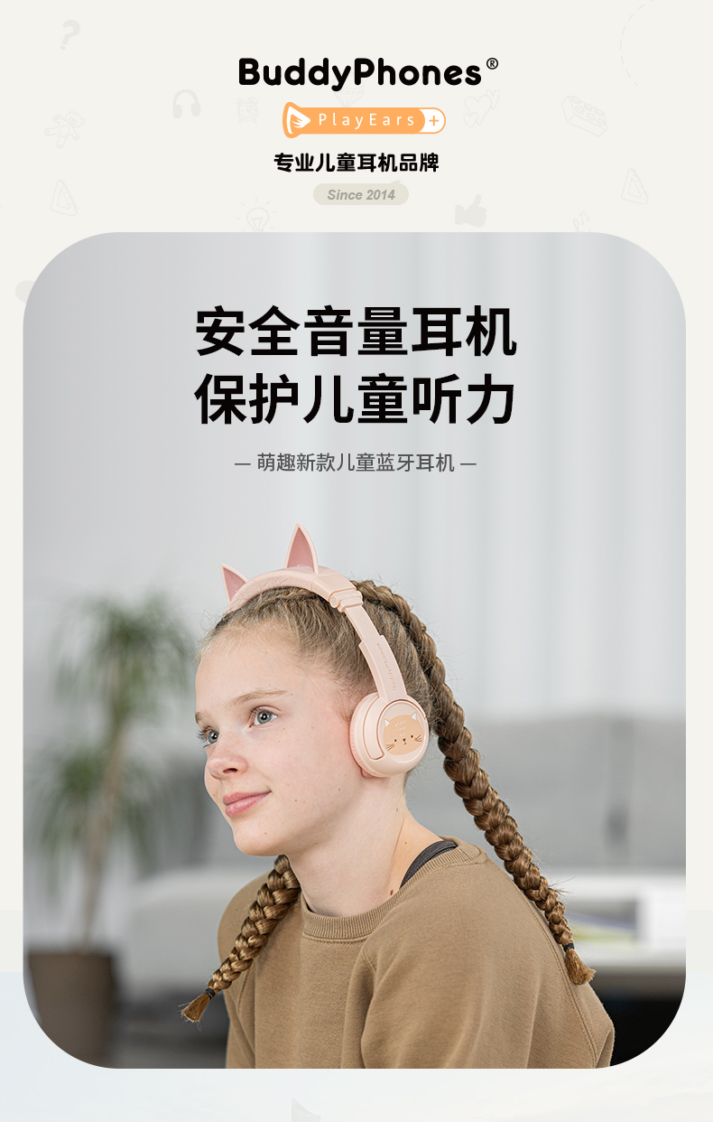 BuddyPhones PlayerEars 主动降噪儿童耳机头戴式无线蓝牙护耳学习网课