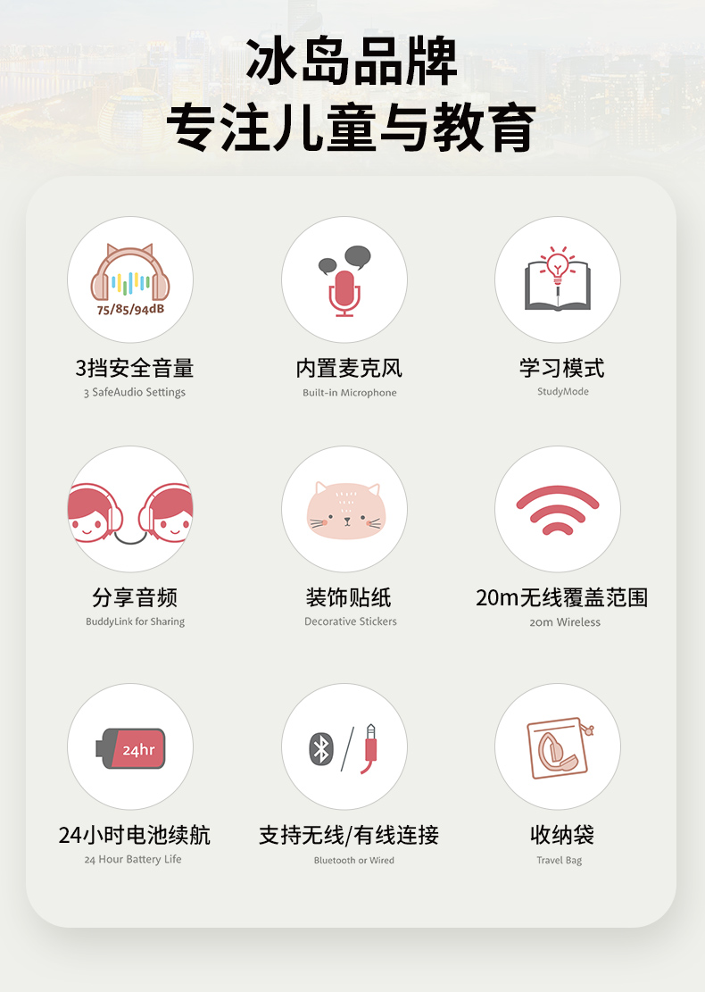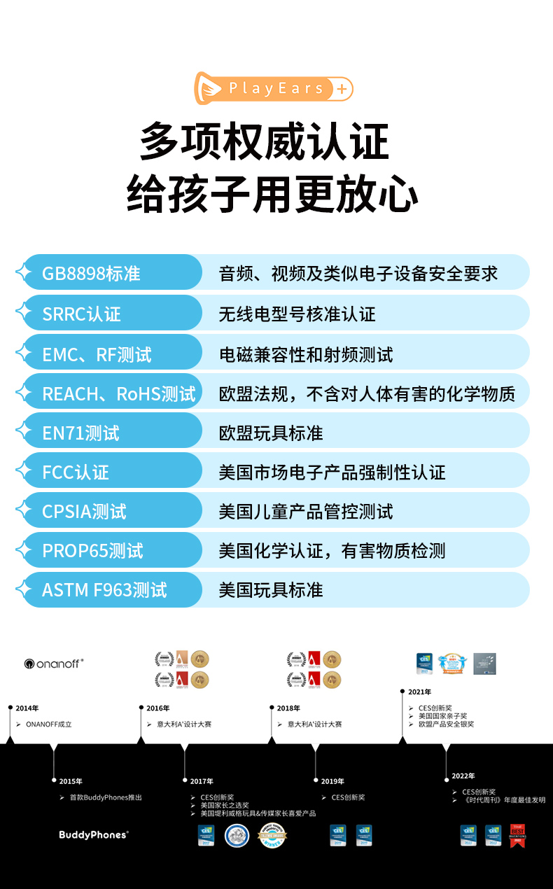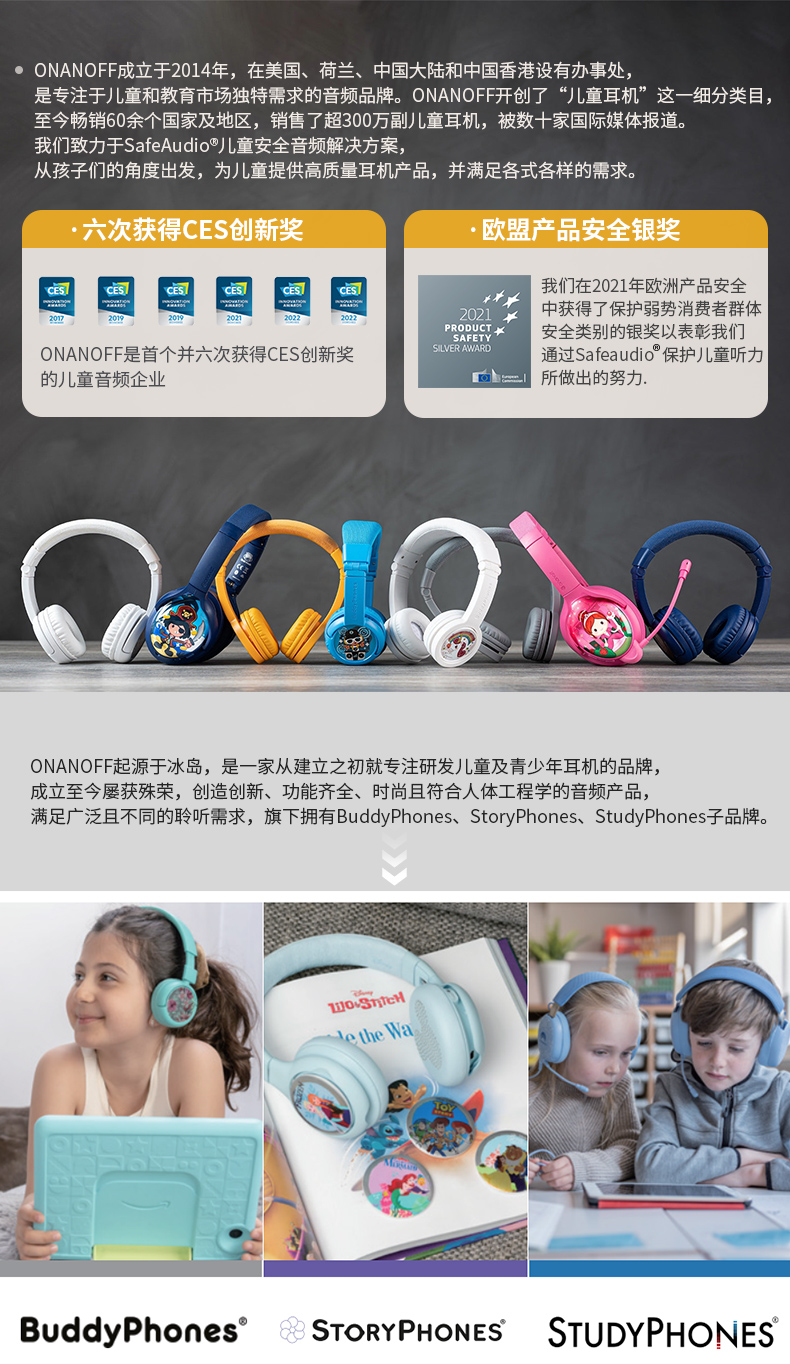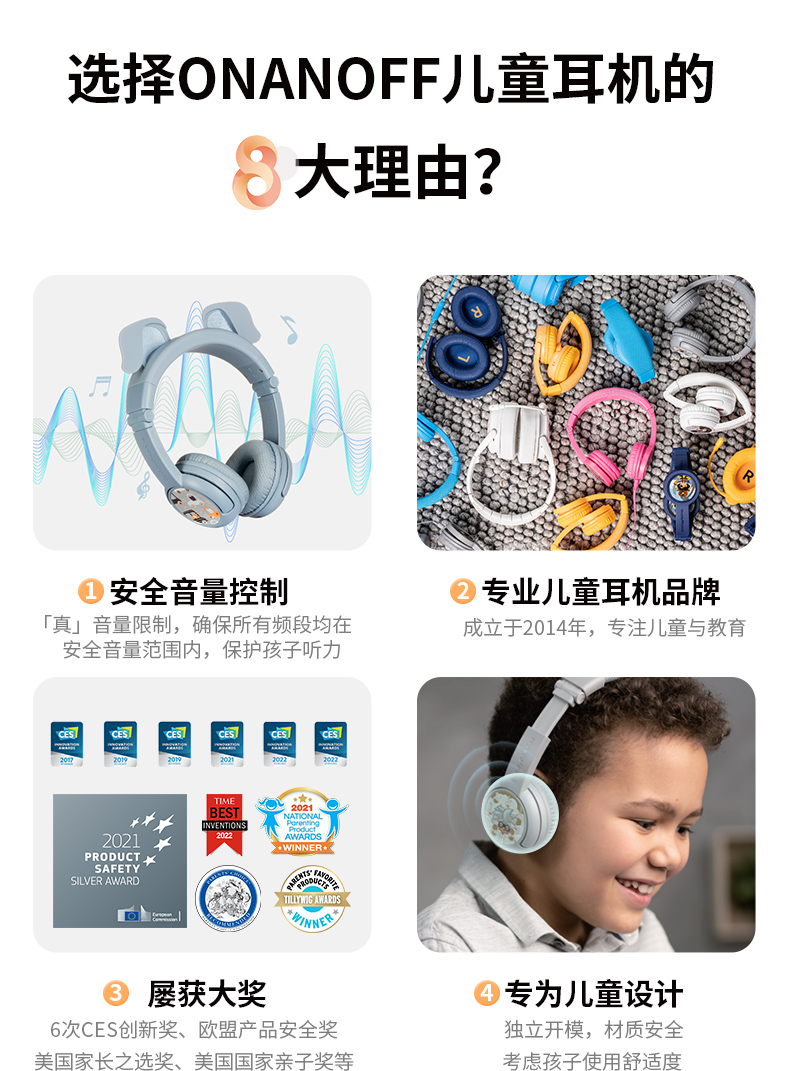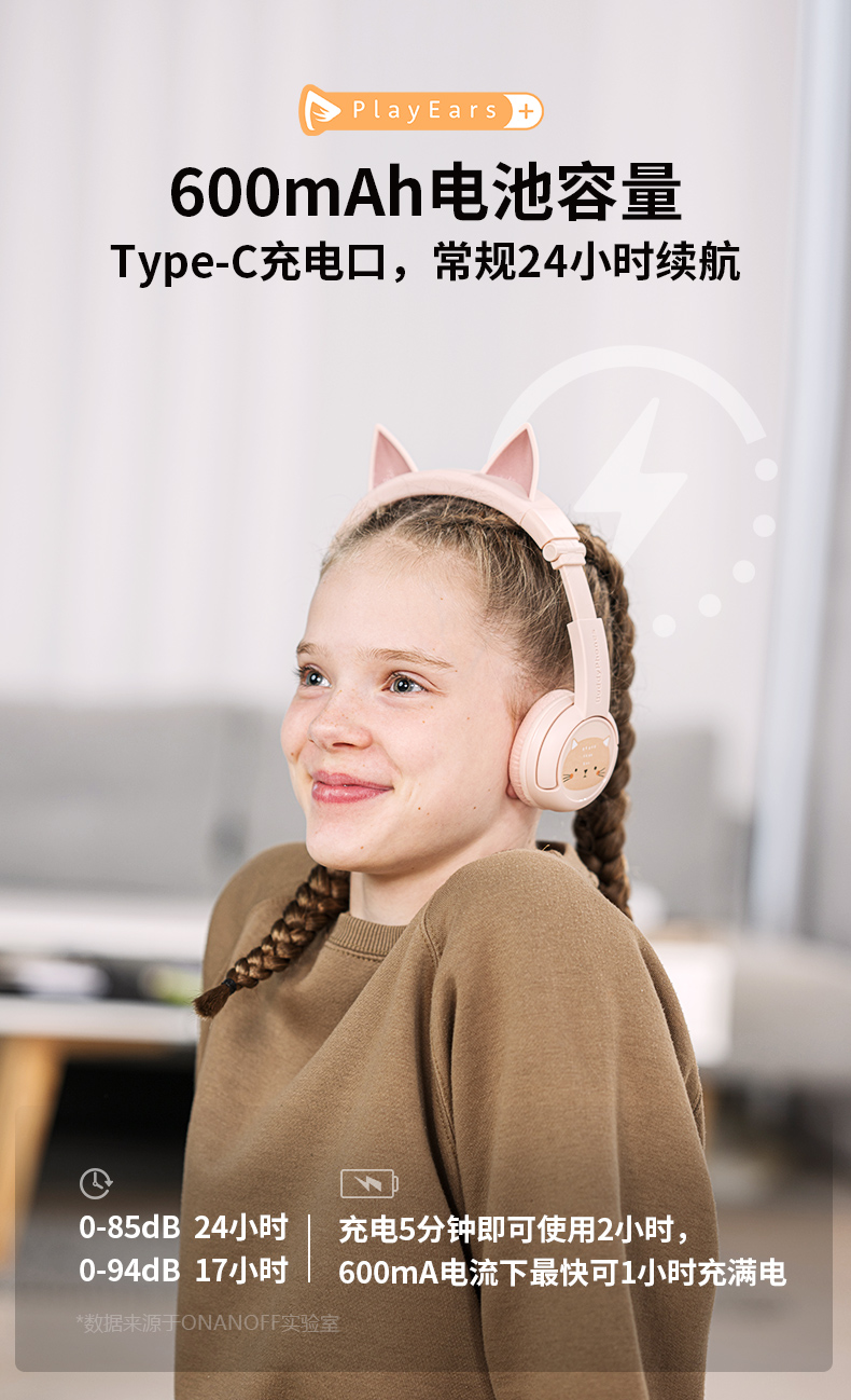BuddyPhones PlayerEars 主动降噪儿童耳机头戴式无线蓝牙护耳学习网课