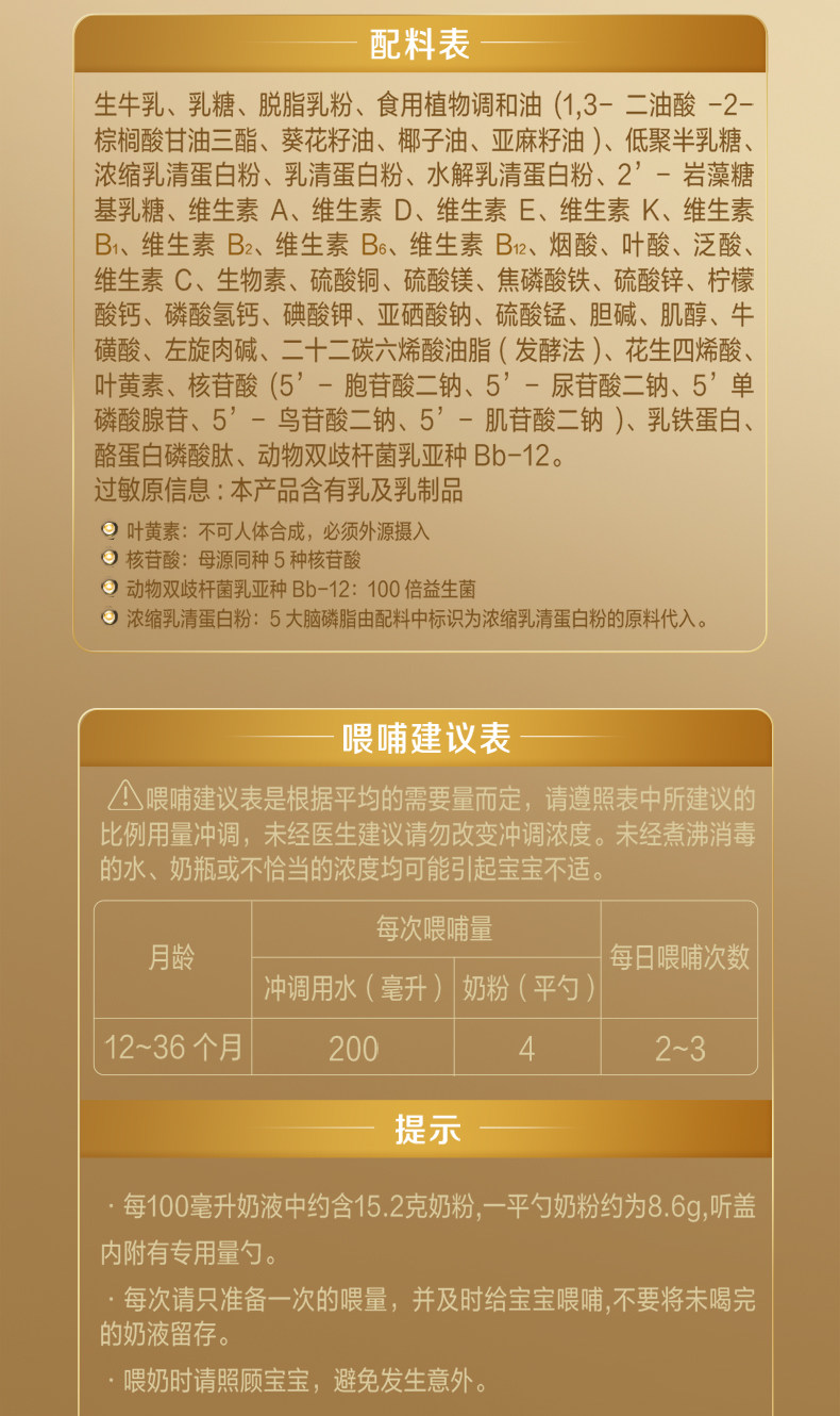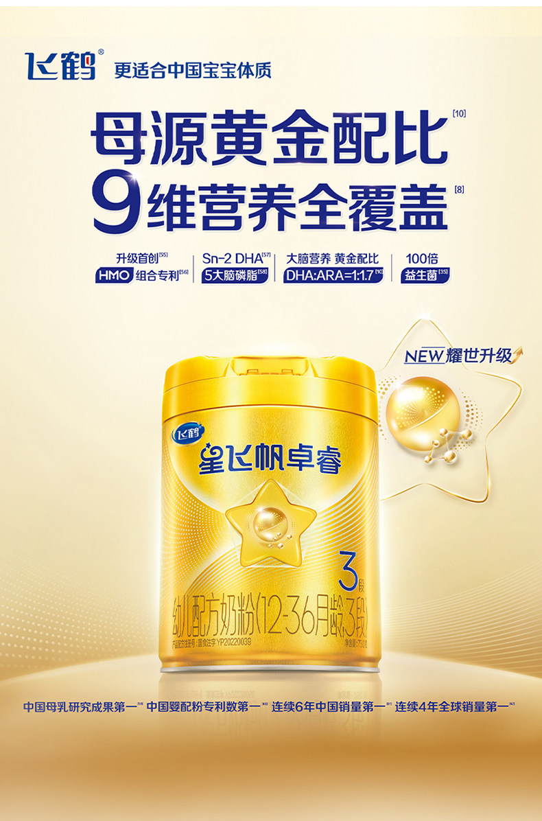飞鹤星飞帆卓睿3段婴儿配方奶粉听装750g