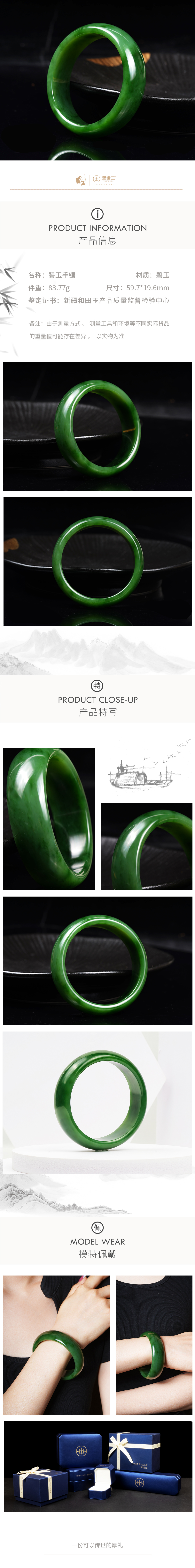新疆国玉盟世玉和田玉碧玉手镯 圈口59.7【带证书·顺丰物流】