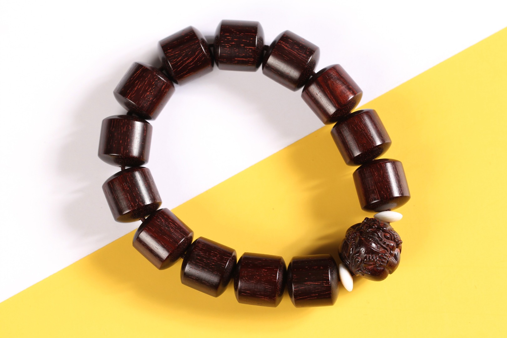 搭配:高品质小叶紫檀为主,配紫檀貔貅及白隔片做点缀