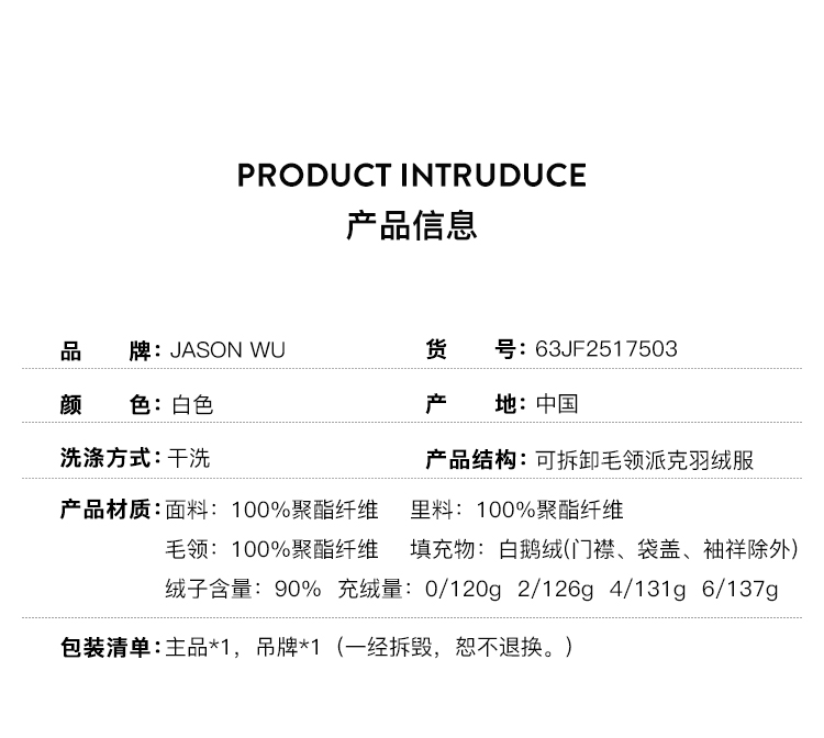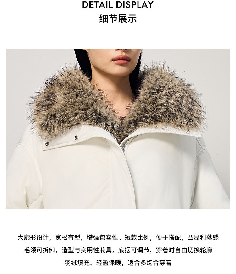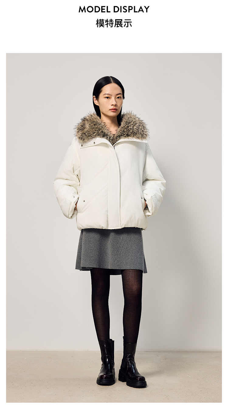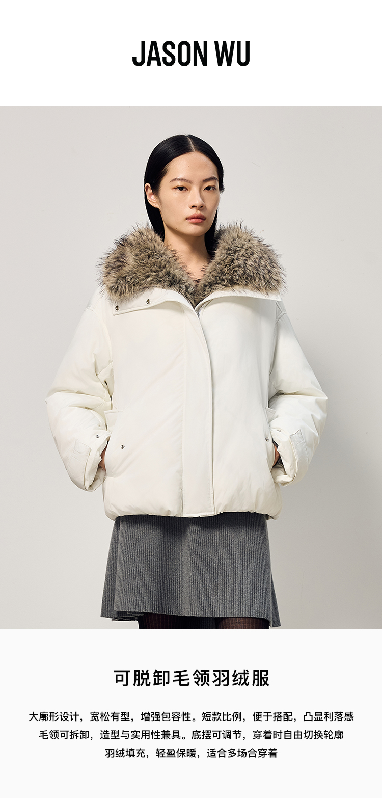 【JASON WU】2025秋冬新款时尚通勤气质纯色拼接高档可脱卸毛领羽绒服