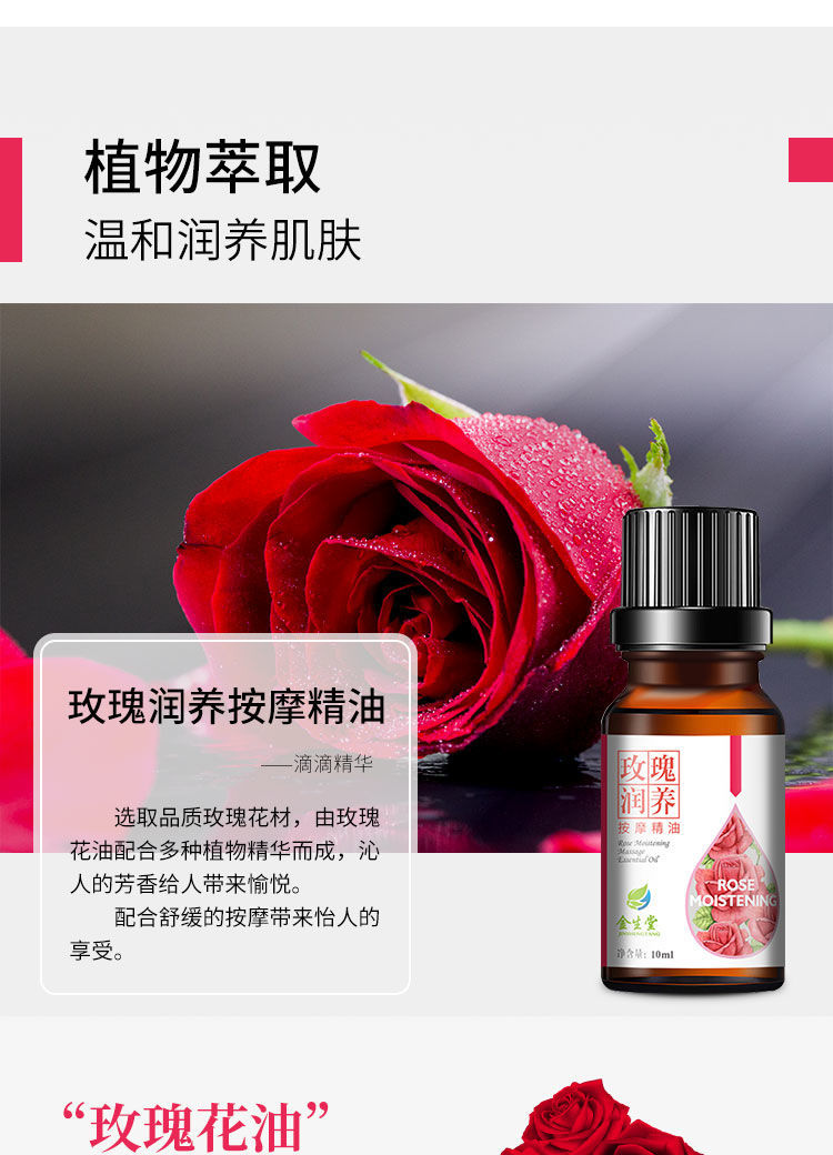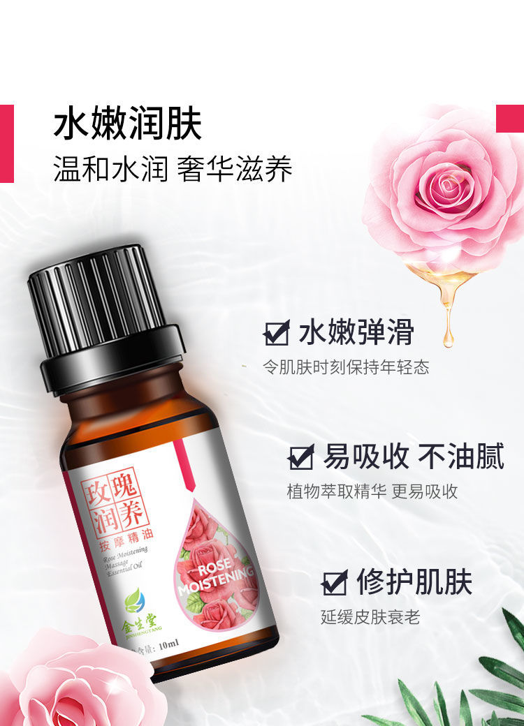正品玫瑰精油10ml通经络小瓶香薰按摩精油美容院成人便携保养滋润