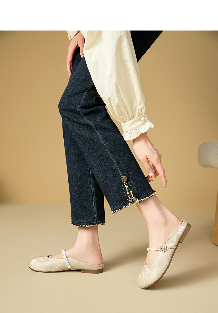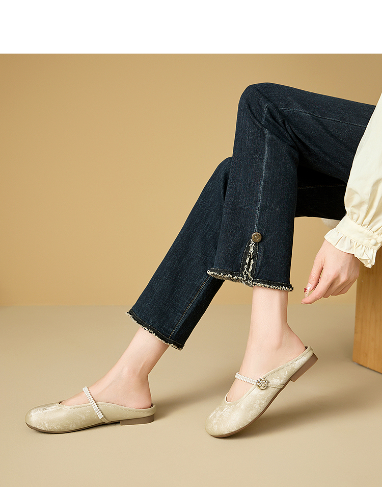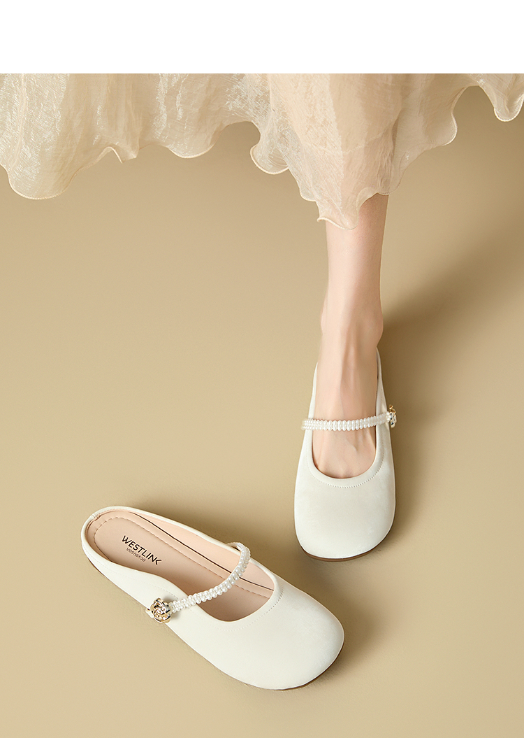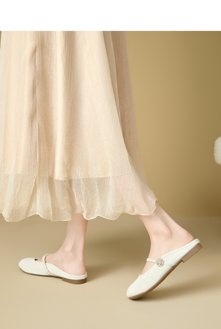 西遇法式包头半拖鞋女新款春夏仙女风配裙子平底玛丽珍穆勒鞋V0556530