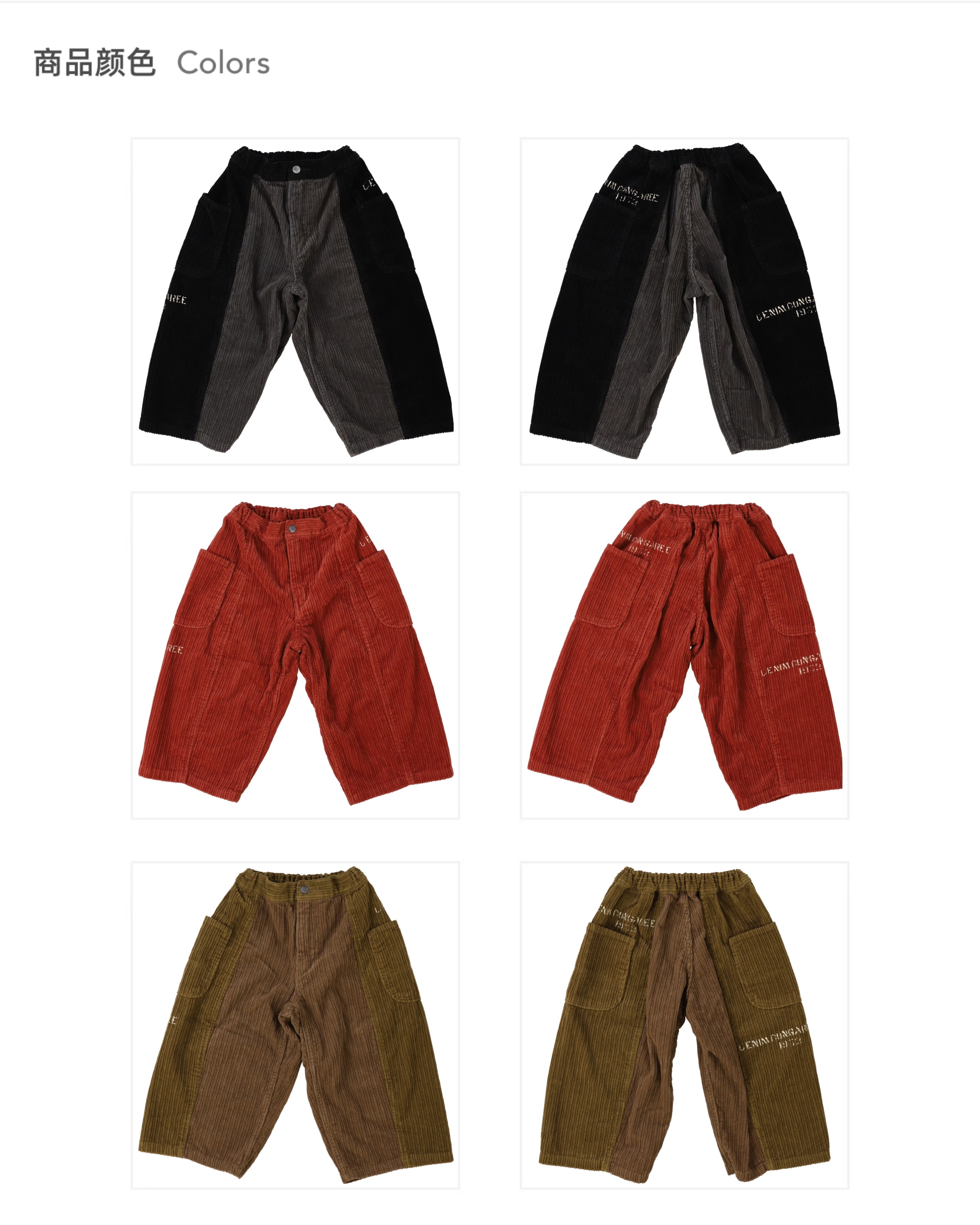 日本DD童装 DENIM DUNGAREE 复古拼接灯芯绒长裤
