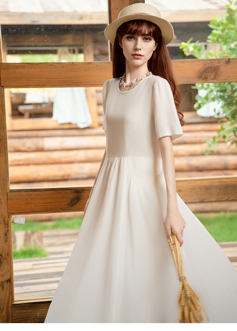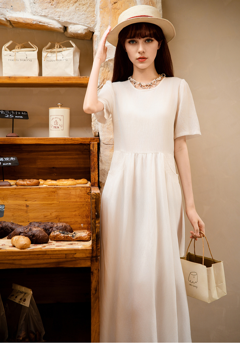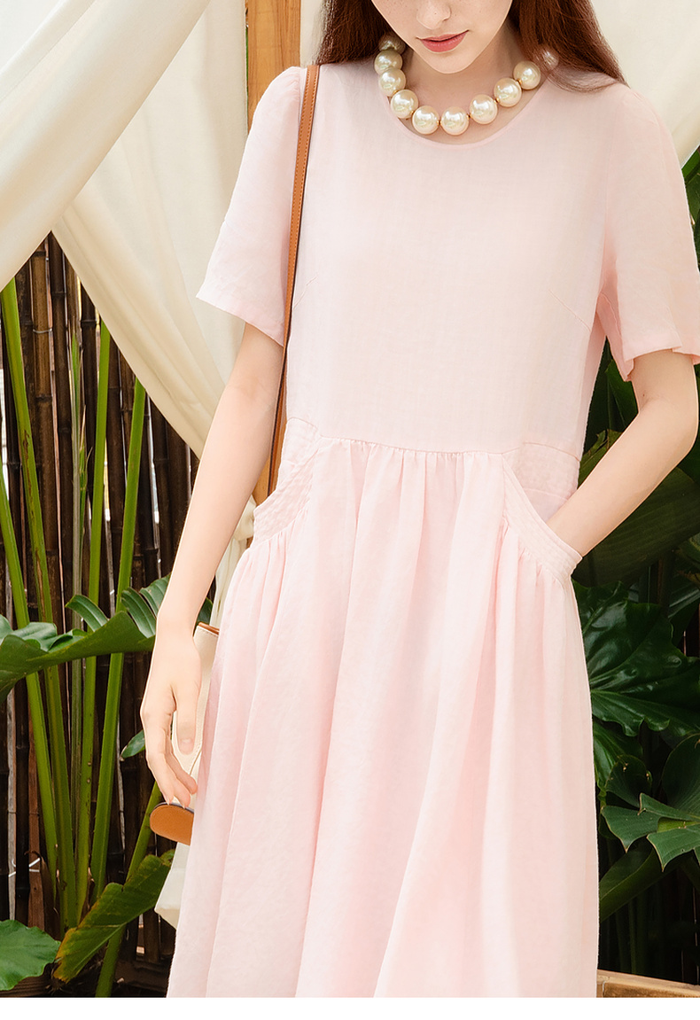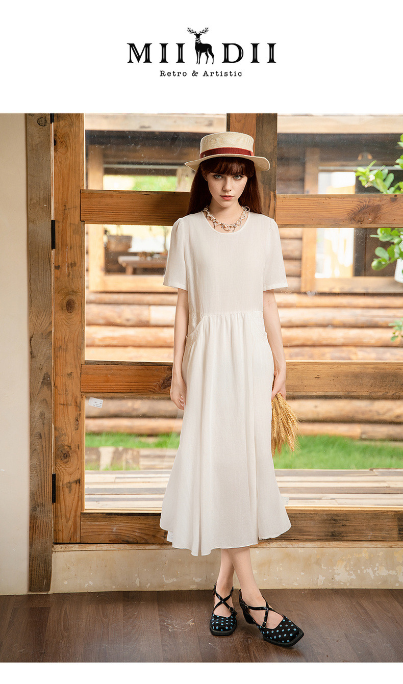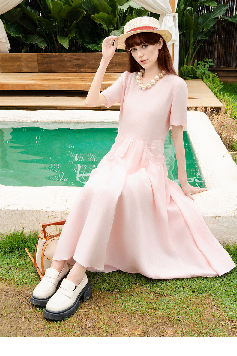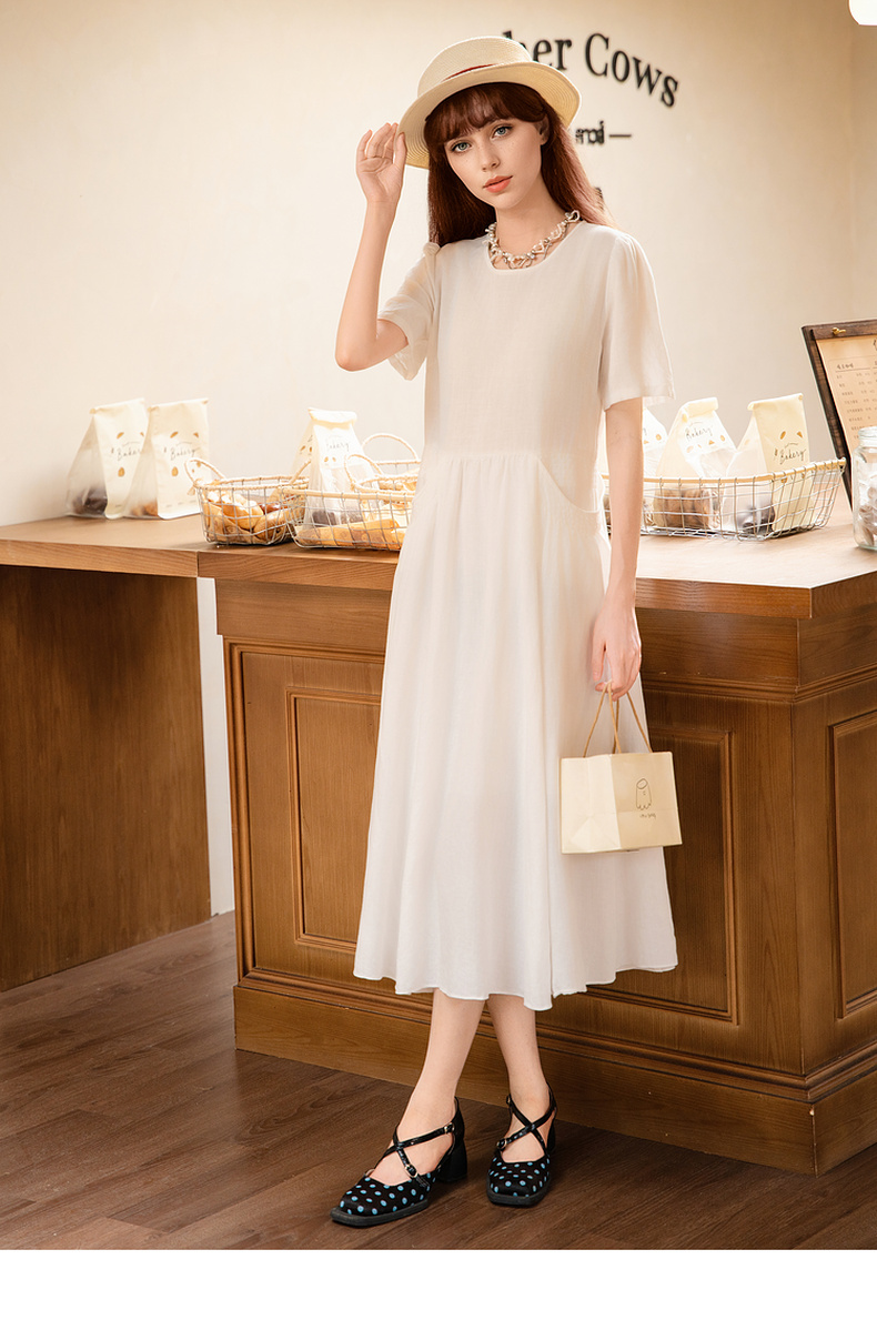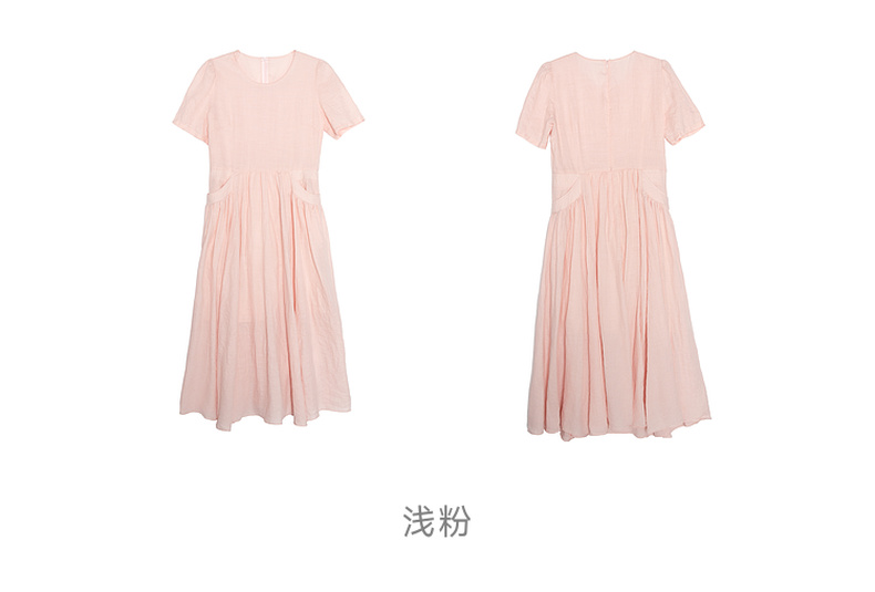 谜底连衣裙短袖女2025夏季新款极简风纯色中长裙大摆裙256ML6503