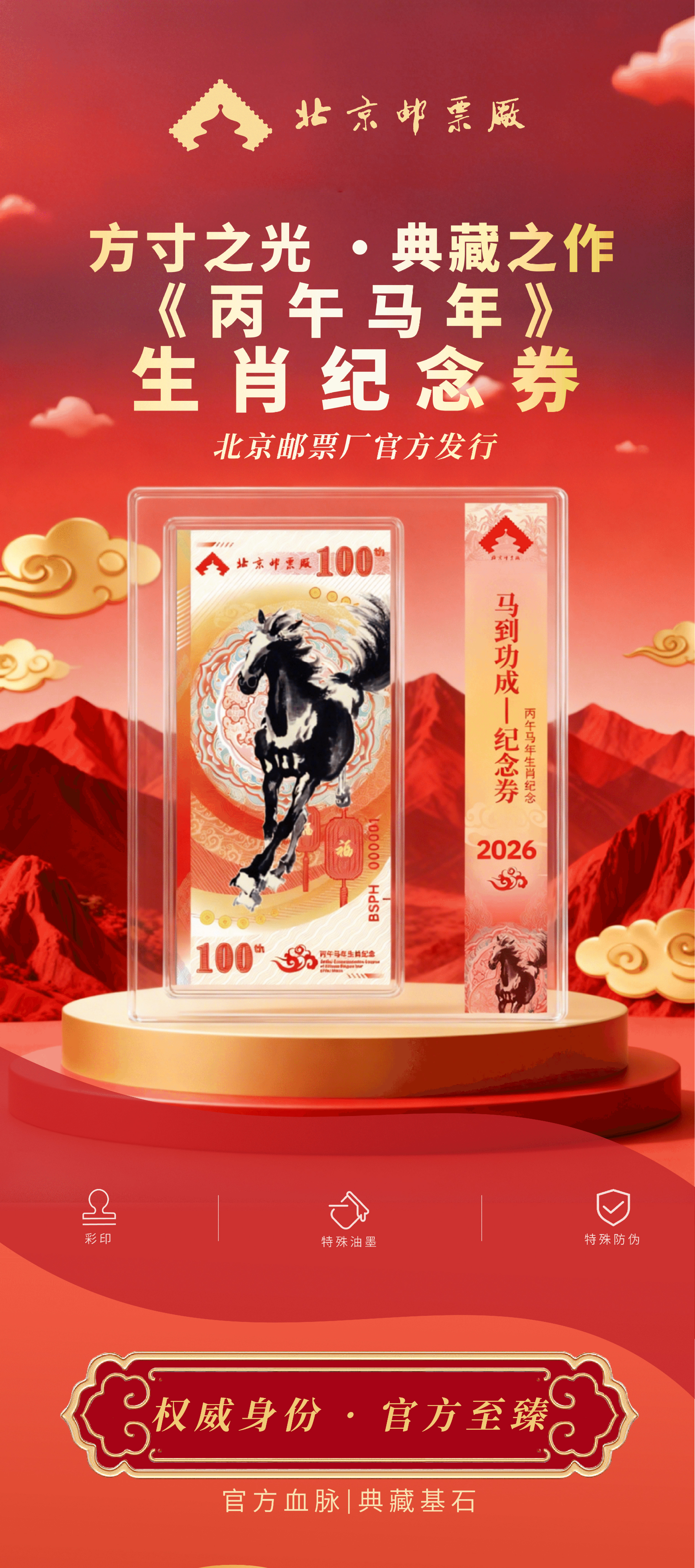 2026“马到成功”纪念券【丙午马年 生肖纪念券】解锁马年 北京邮票厂官方发行