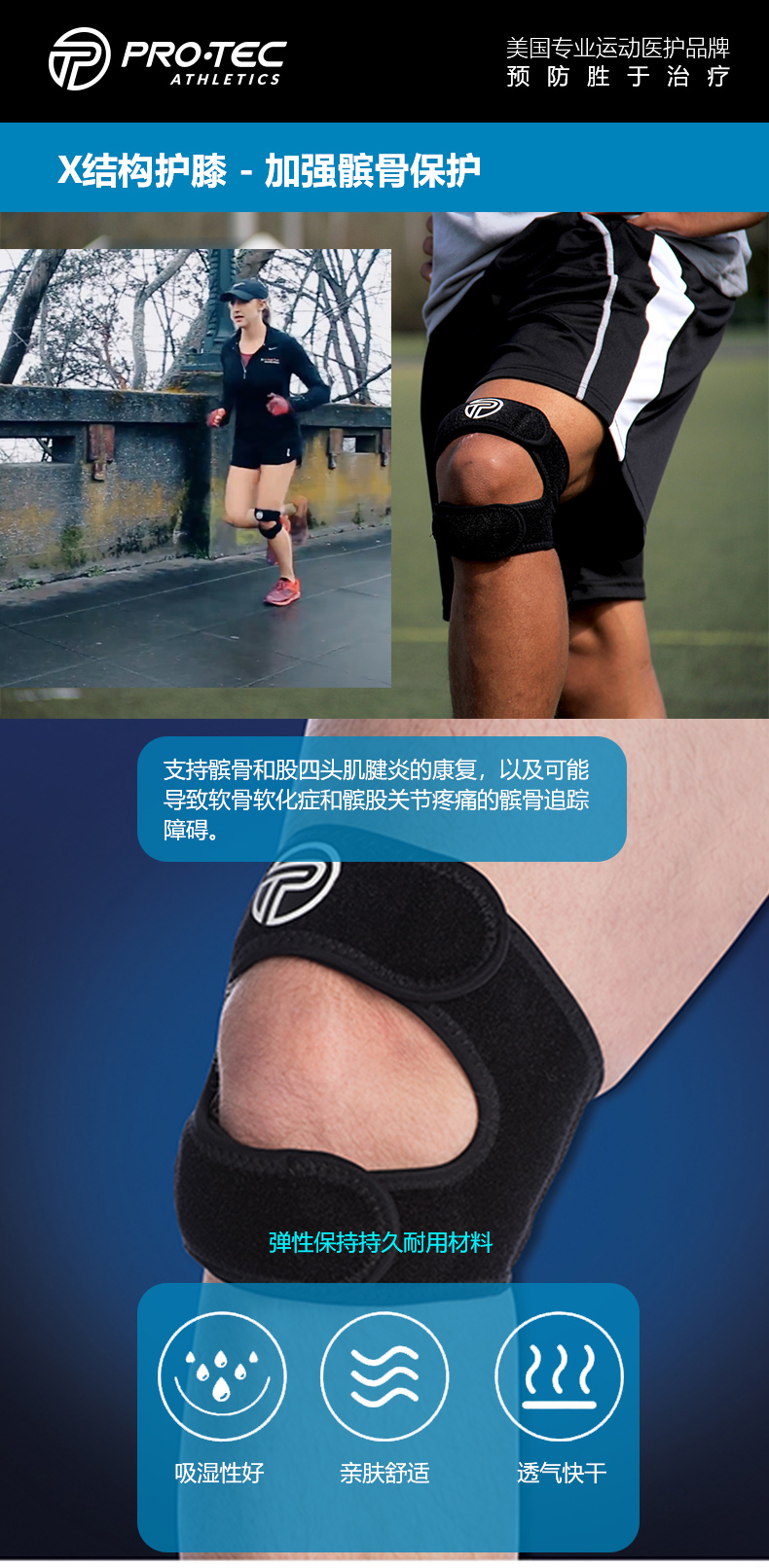 PRO-TEC PT X-Trac Knee 跑步X结构运动护膝 单只装