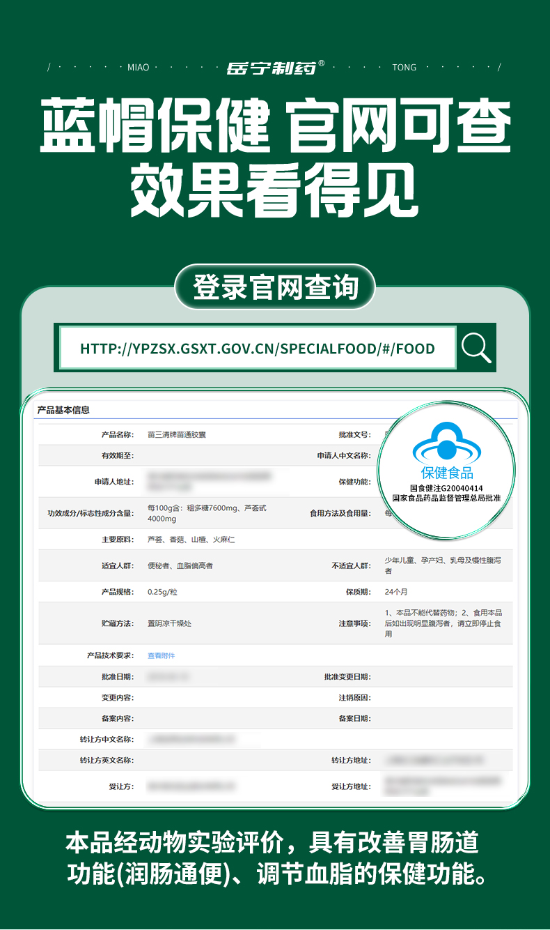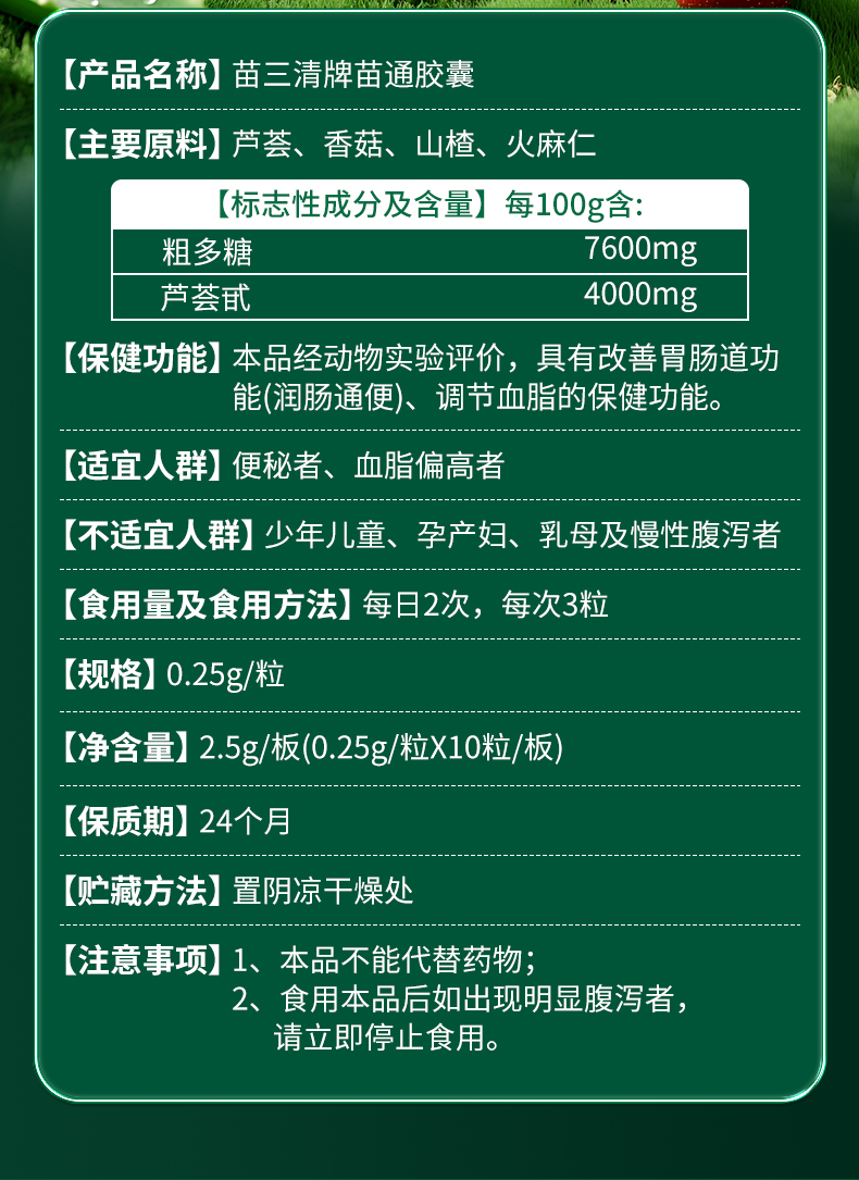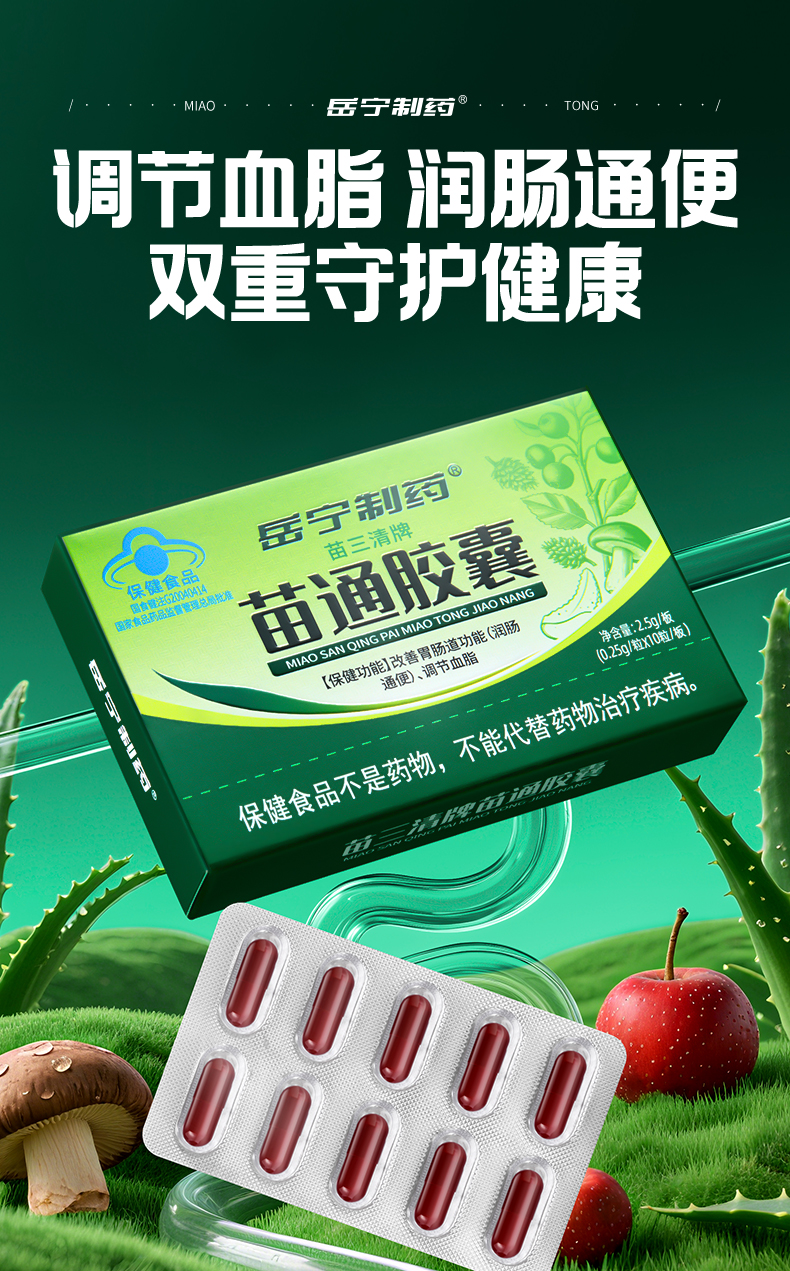 岳宁制药 苗三清牌苗通胶囊 10粒/板