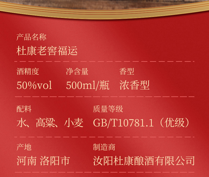 杜康老窖福运酒50度500mL*6瓶整箱装 浓香型白酒