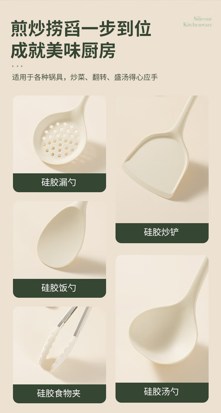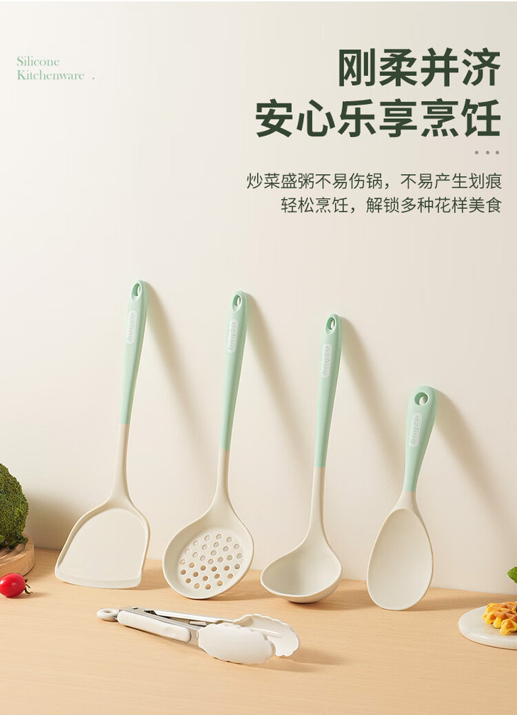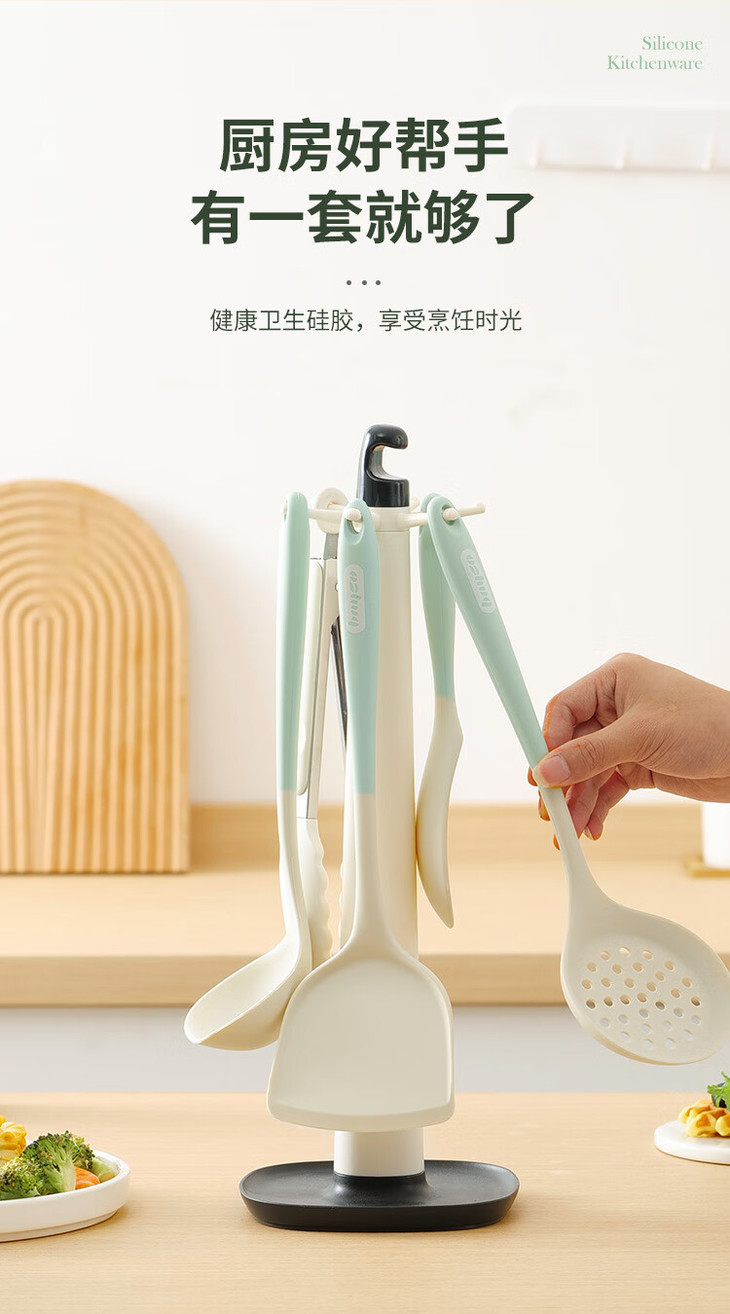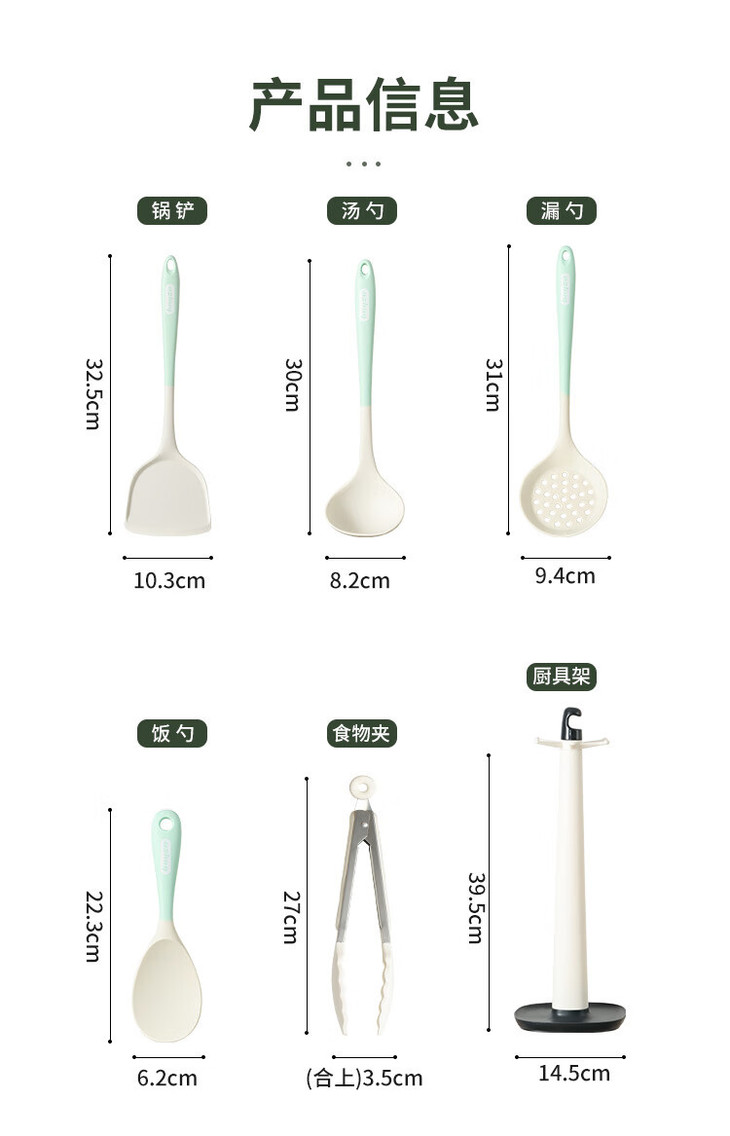 「七件套!硅胶厨具」硅胶锅铲全包硅胶厨具七件套 厨房用品餐饮用具勺子铲工具套装