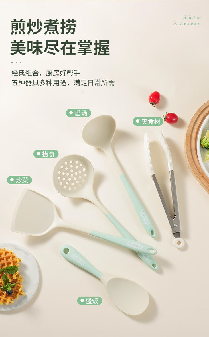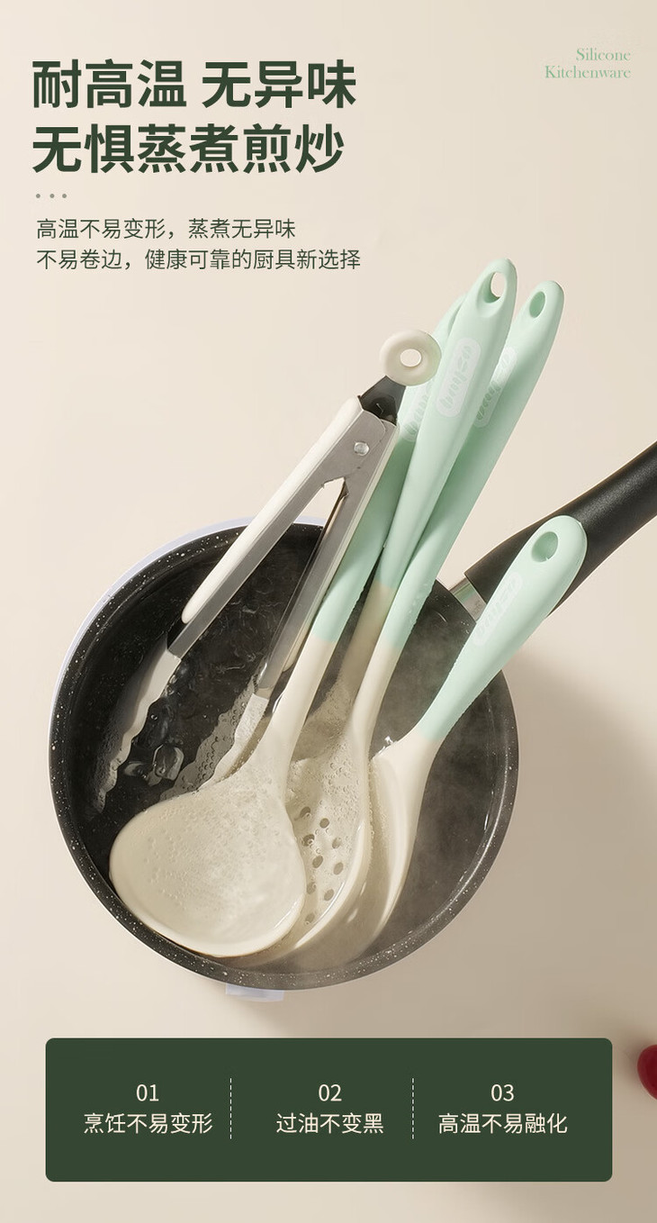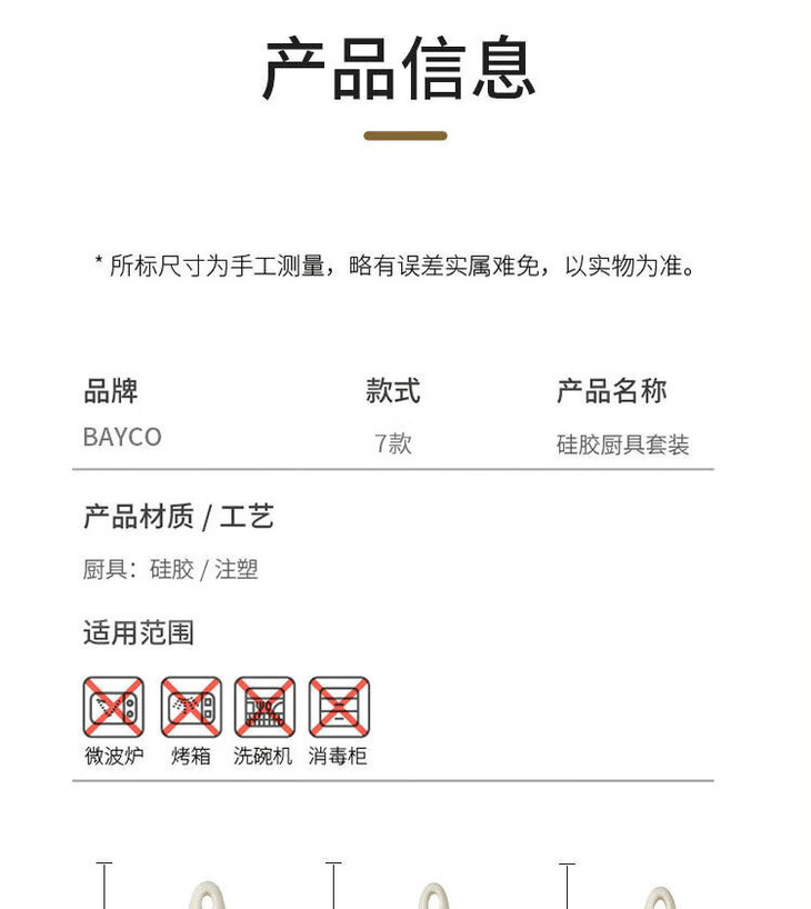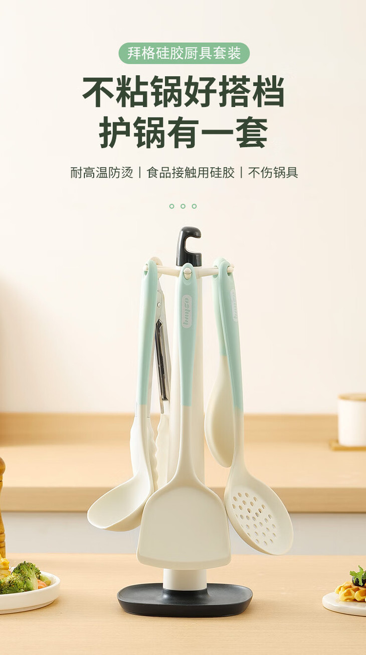 「七件套!硅胶厨具」硅胶锅铲全包硅胶厨具七件套 厨房用品餐饮用具勺子铲工具套装