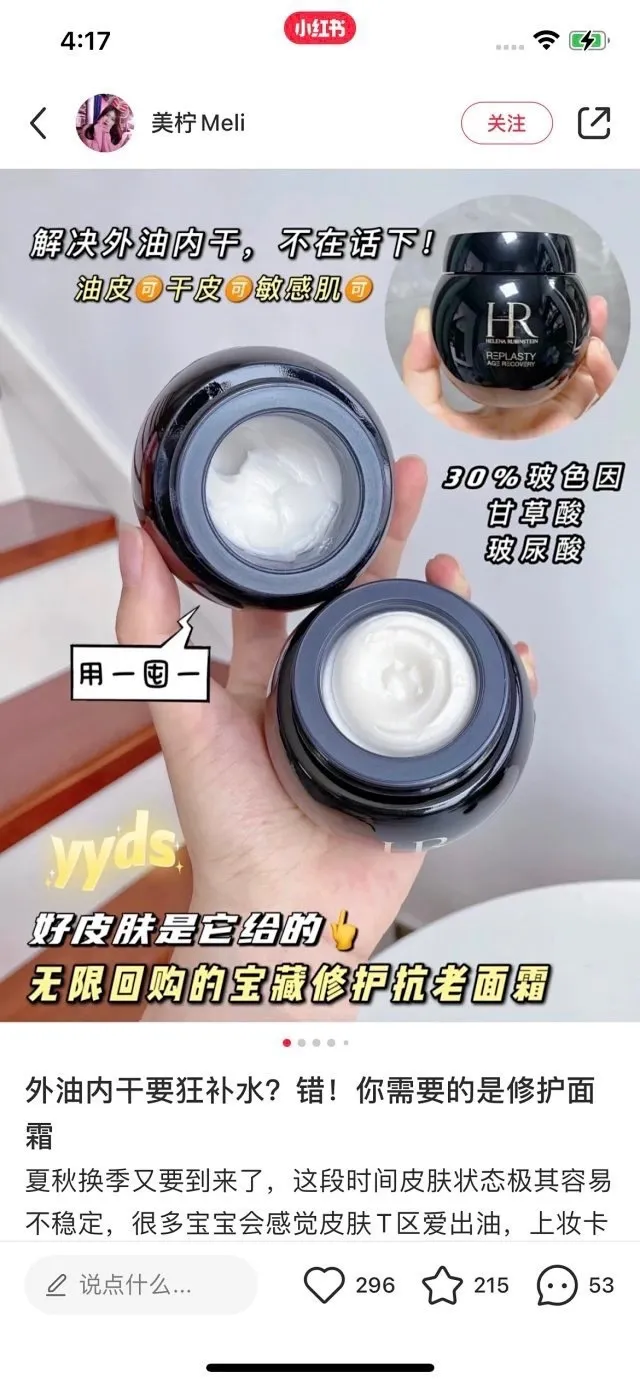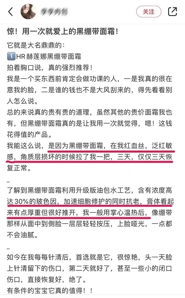 HR赫莲娜绷带面霜,之所以修护这么全靠教科书级别的王牌配方️玻色因+甘草酸+玻尿酸️帮肌肤修护受损屏障,维持肌肤稳定的状态,持续弹嫩起来