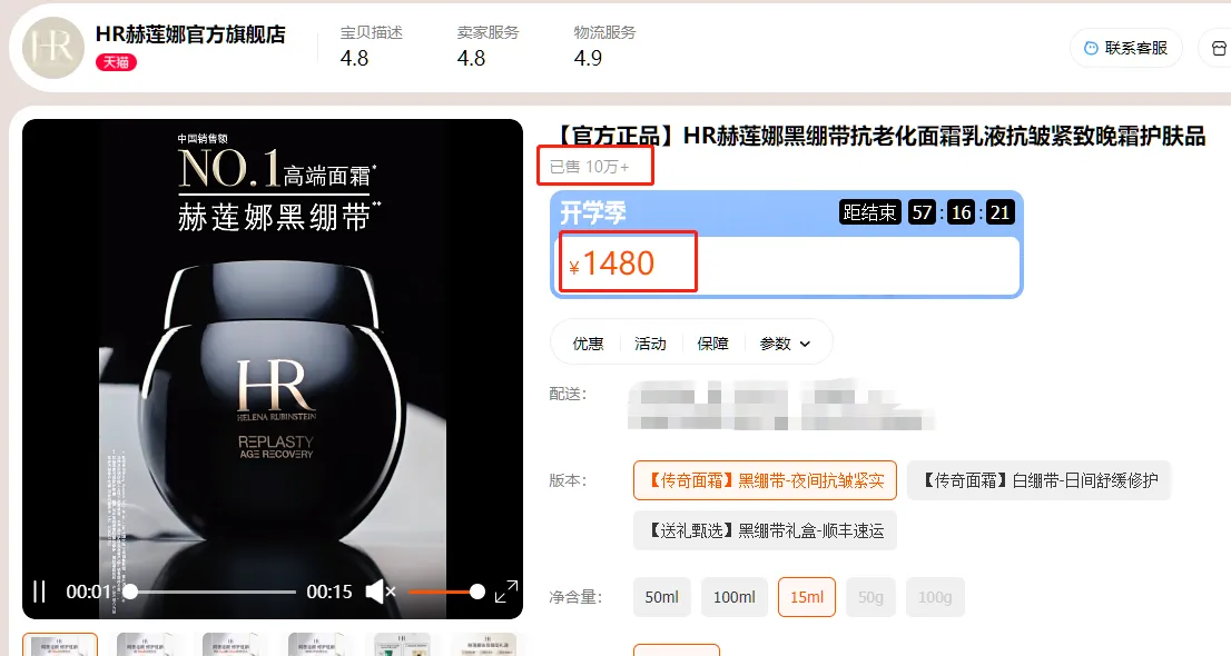 ✅HR赫莲娜黑绑带面霜15ml,正装专柜价格💰1480!!