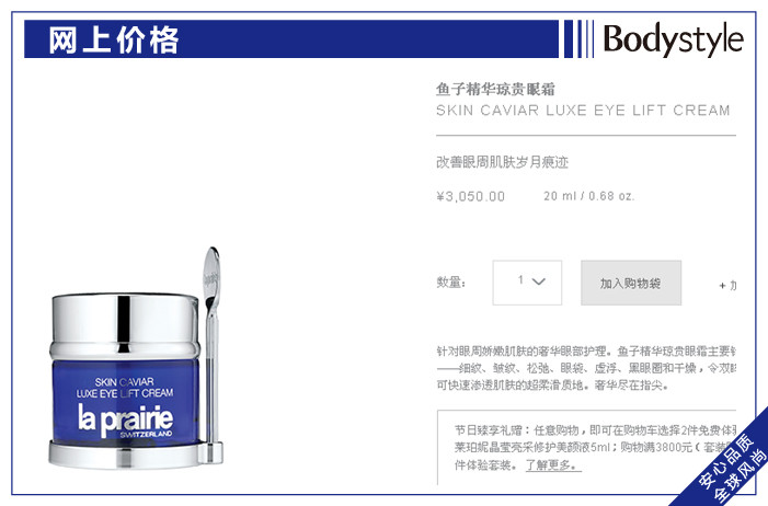 【大牌折扣】La Prairie莱珀妮鱼子精华琼贵眼霜 20ml~