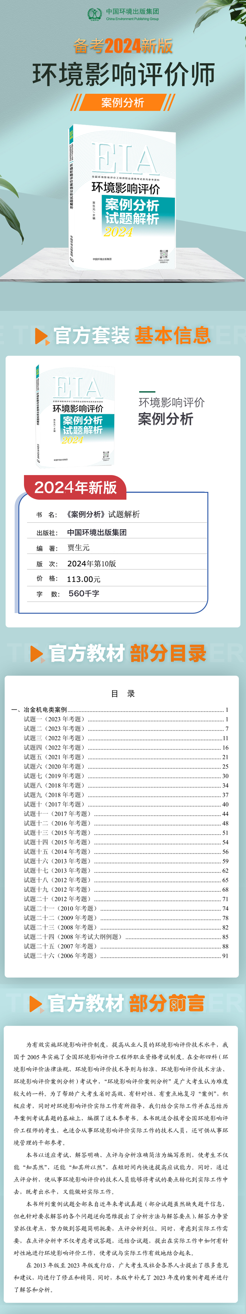 环境影响评价案例分析试题解析(2024年版) 9787511158000