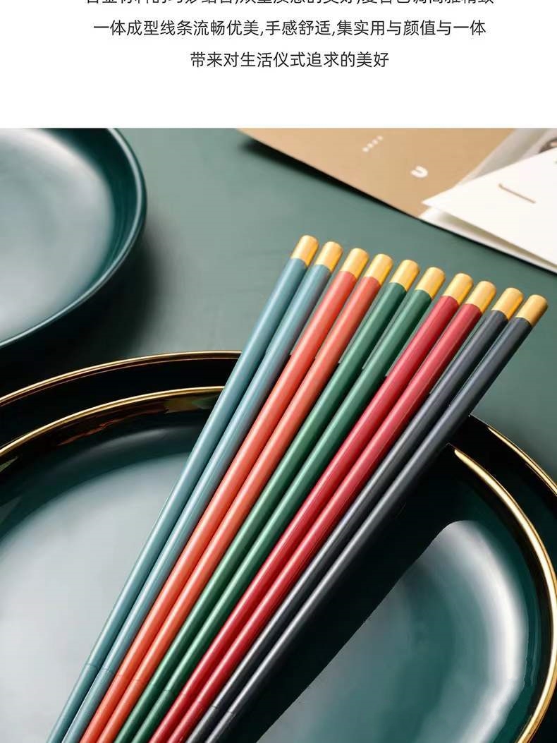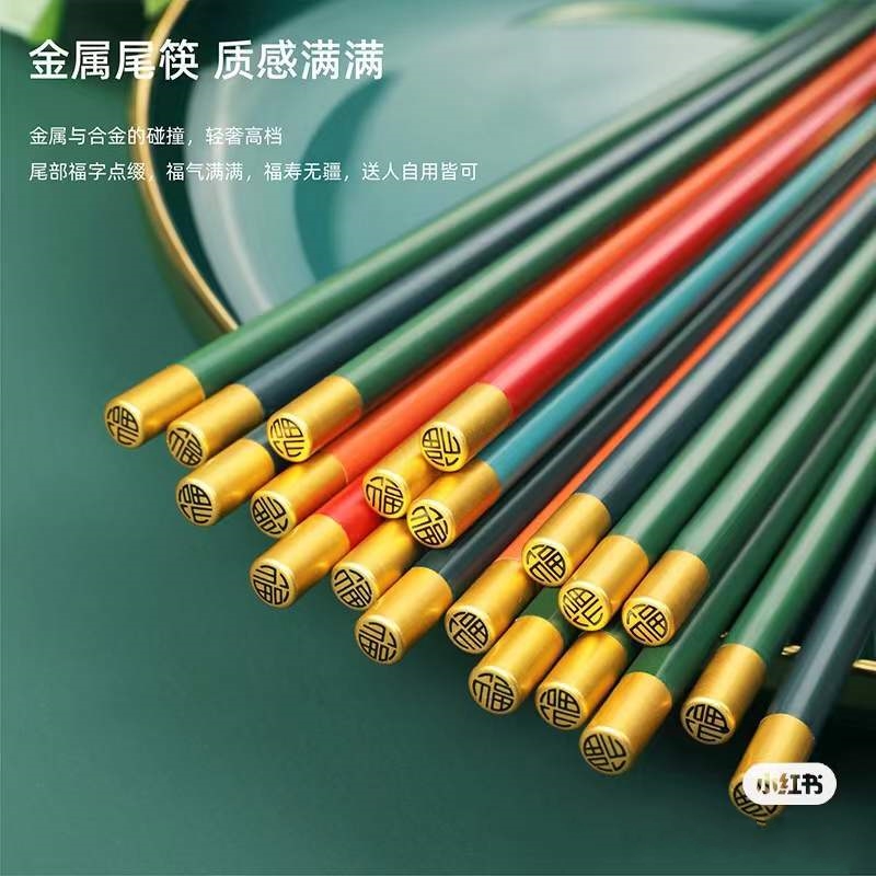 「5双装」合金筷子家用耐高温筷子不易发霉餐饮用具一人一筷防滑