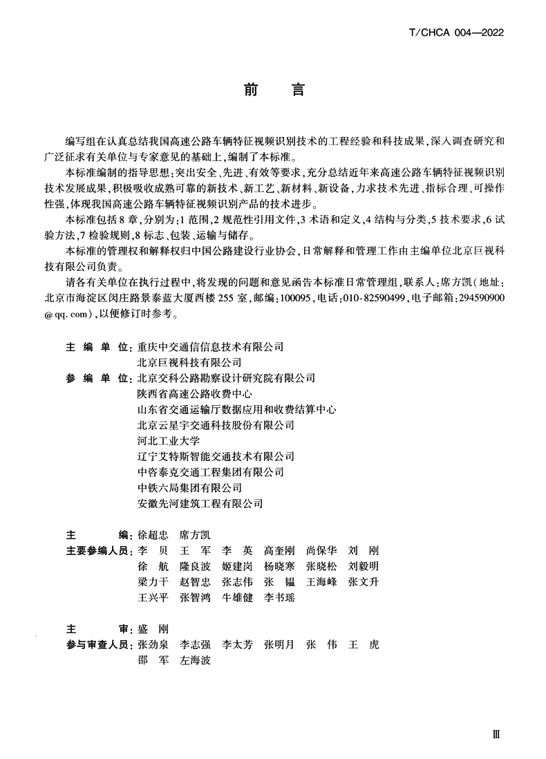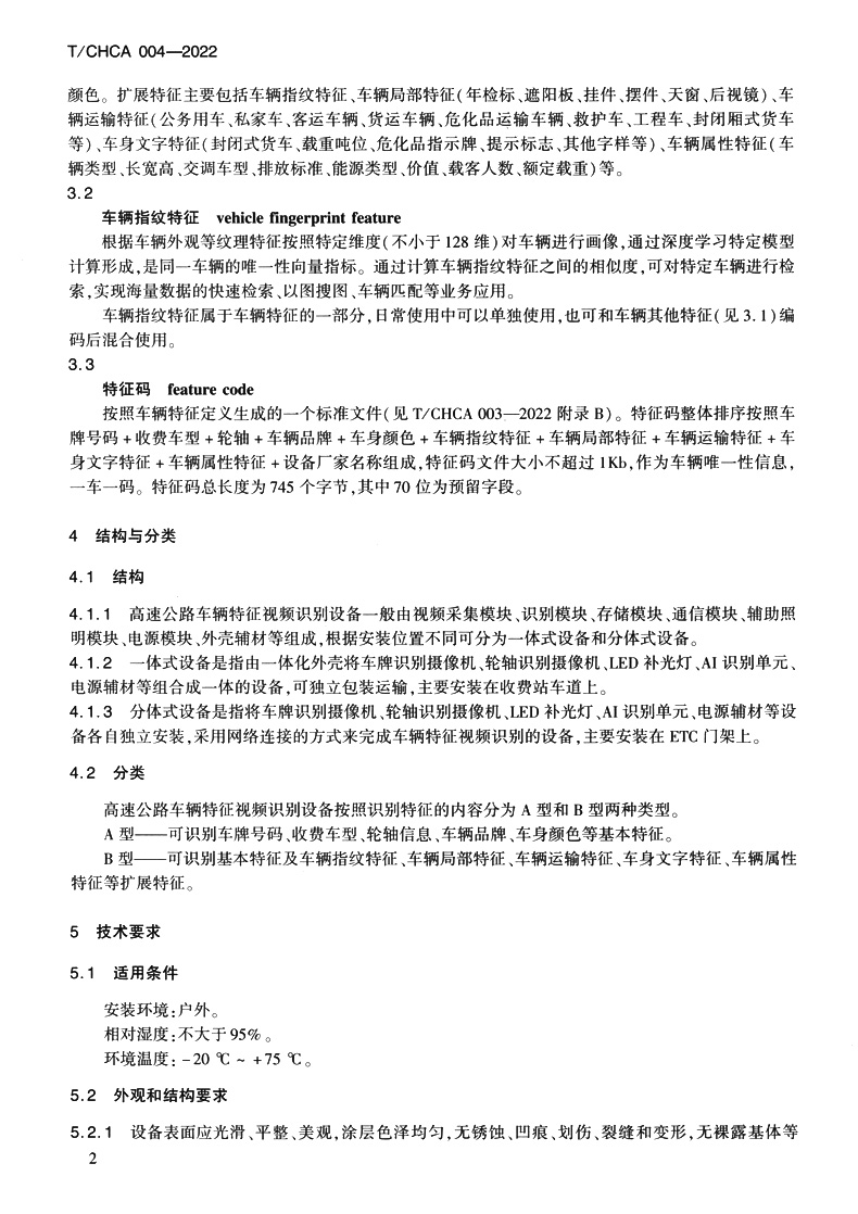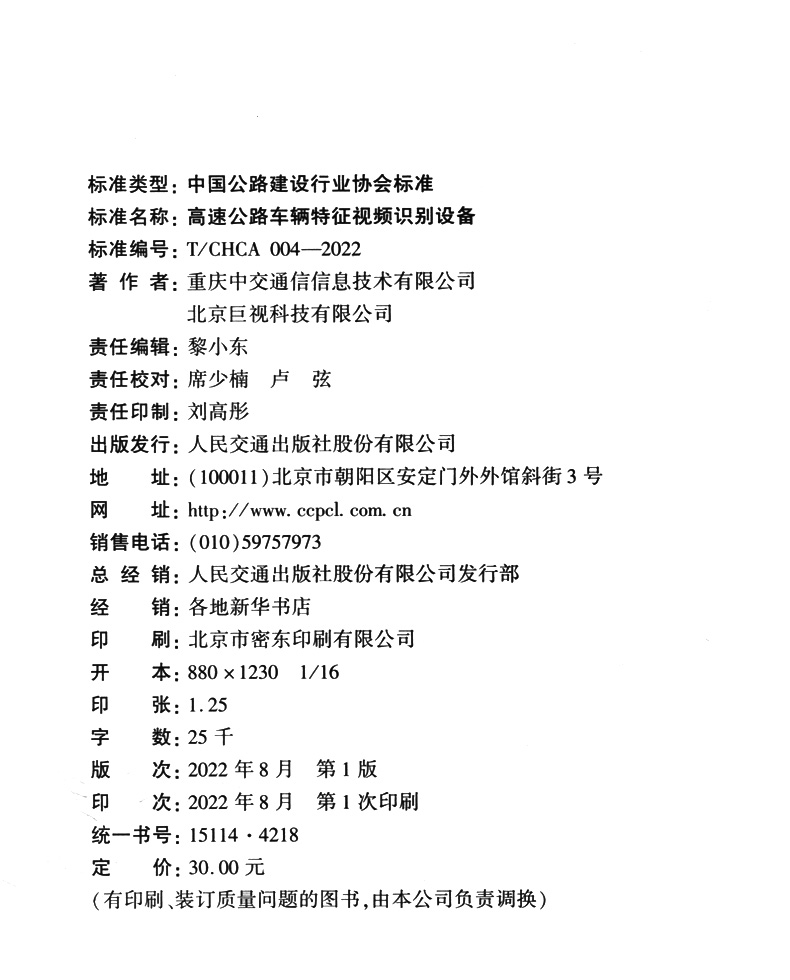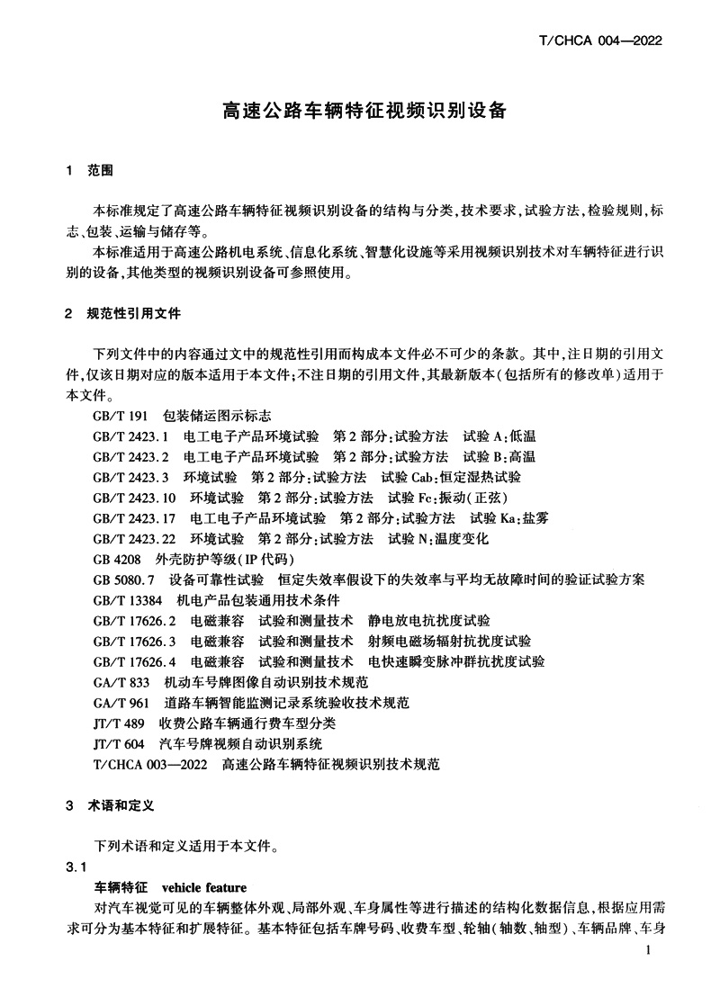 书名:高速公路车辆特征视频识别设备(T/CHCA 004—2022)