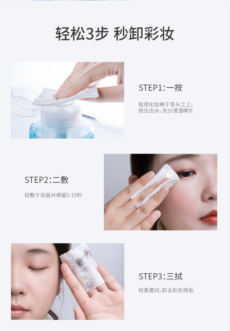 【旅行卸妆中样套组】卸妆水50ml*3+化妆棉50片*3