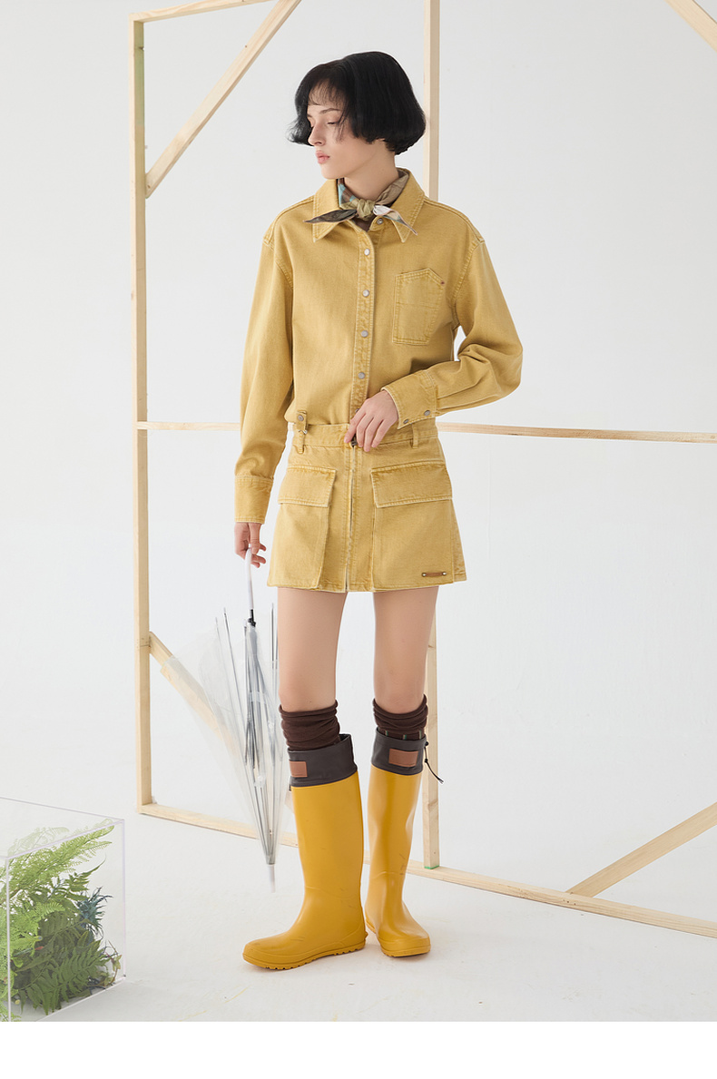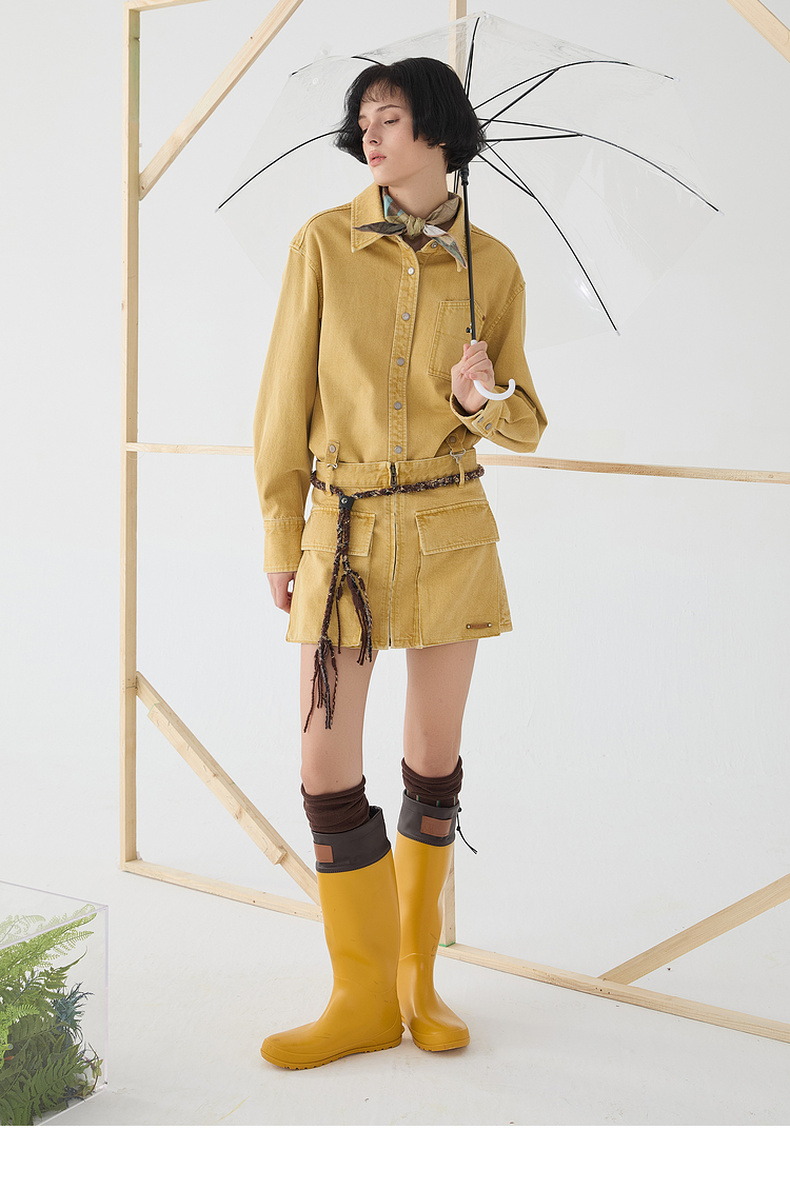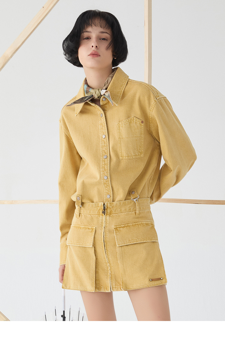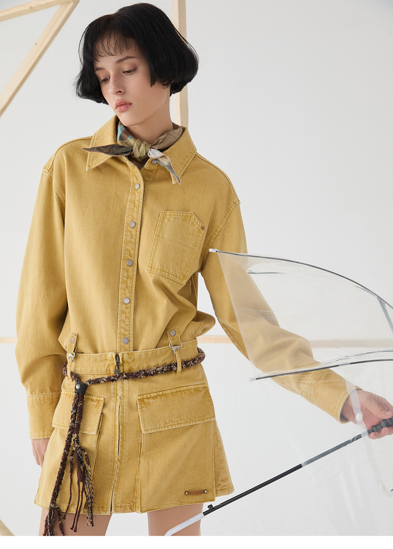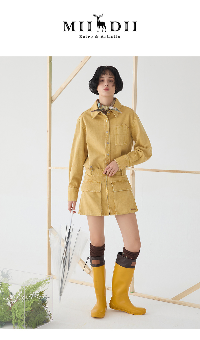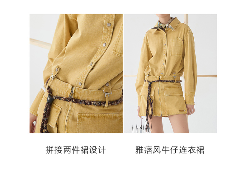 谜底连衣裙长袖女2025春季新品假两件式牛仔棉水洗短裙251ML0088