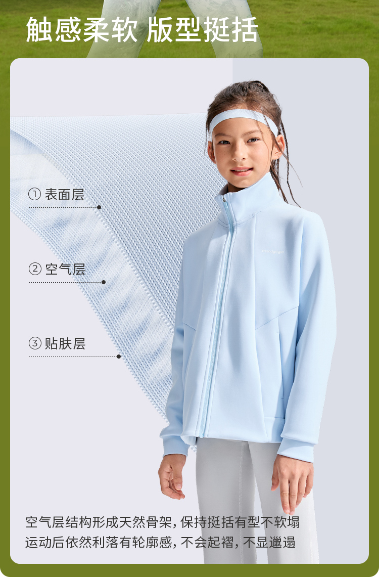 【24年秋新】moodytiger24秋新女童立领外套百搭舒适透气儿童户外运动衣43210402