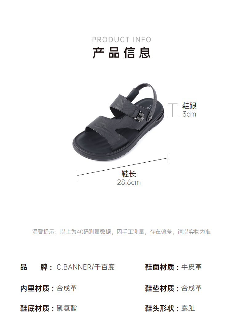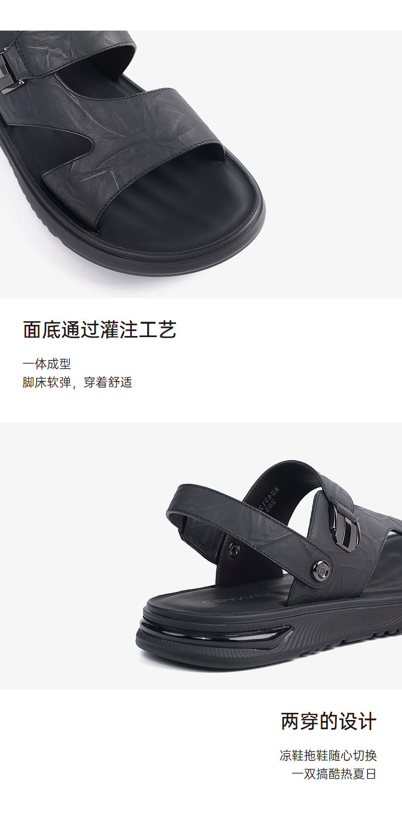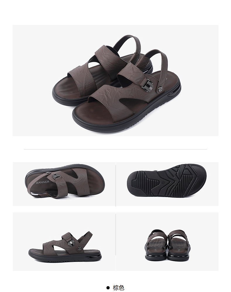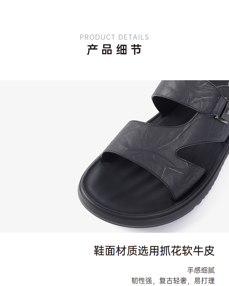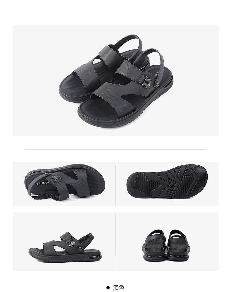 千百度男士沙滩户外凉鞋年夏季商场同款真皮拖鞋休闲凉鞋A24312607