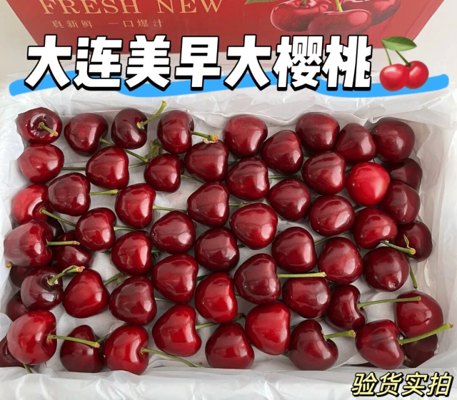 大连美早樱桃, “樱桃万千,大连真鲜” ,个头大、甜度高、果味浓,汁水多,风味好