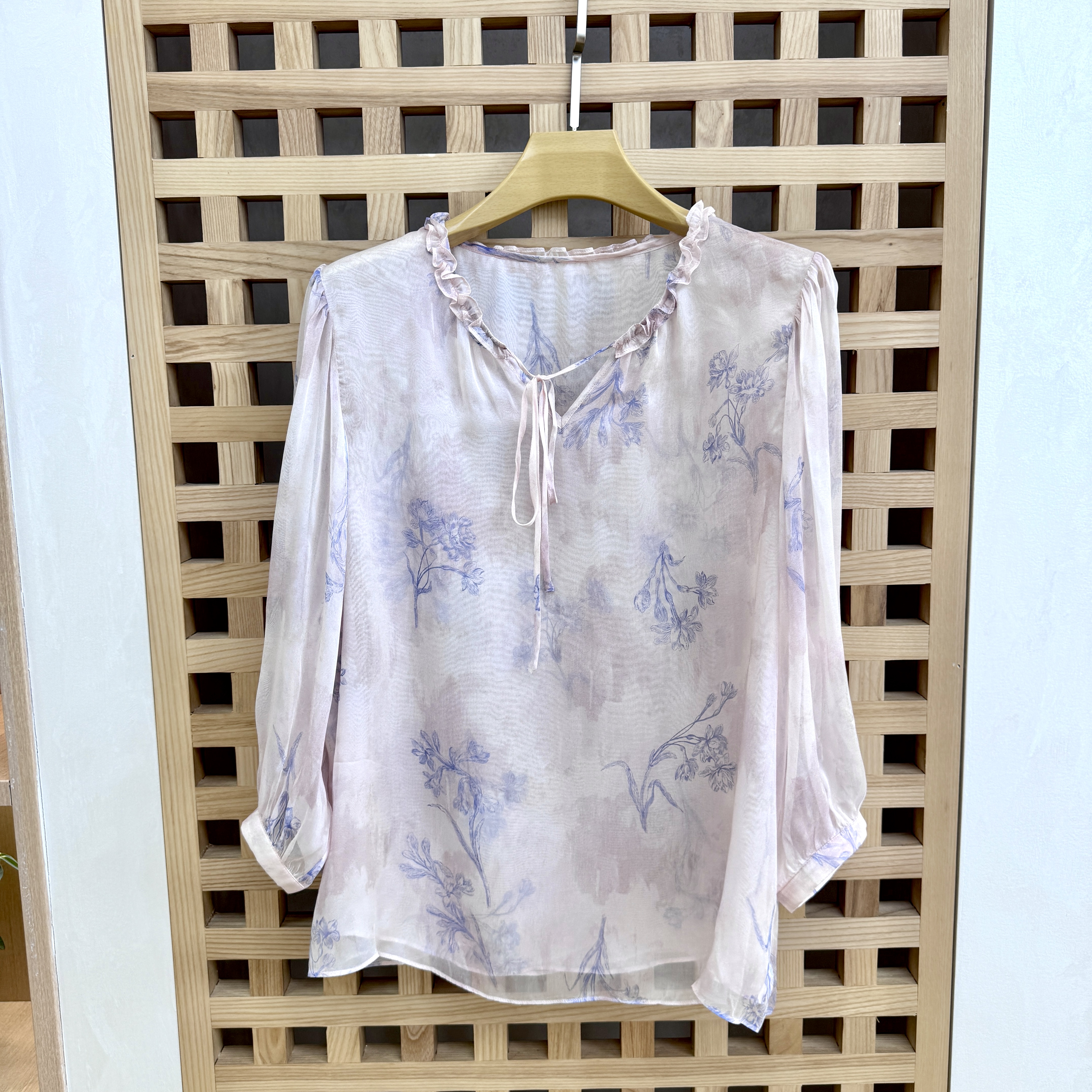 火桐hooton 烟雨江南 雪纺真丝上衣4371