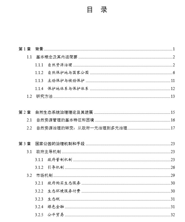 本书按照生态文明领域治理体系和治理能力现代化建设的总体目标,研究如何协调中央、地方、企业、非政府组织、社区和个人等多方利益关系,综合行政管理、政策制度、资金保障、社区发展和公众参与等各方面,按国家公园物品的不同属性,提出实现自然资源严格保护和永续利用的国家公园治理体系,给出我国国家公园治理体系缺乏顶层设计研究方案。