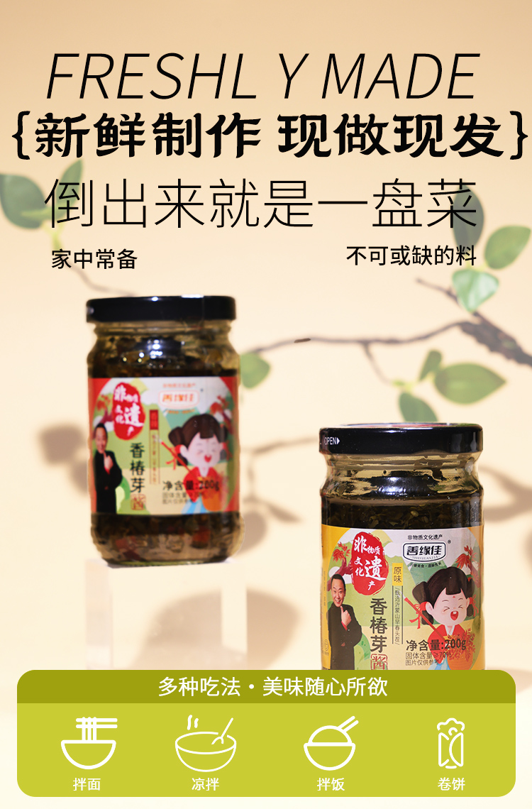 【东方甄选推荐】【头茬嫩芽】沂蒙特产香椿芽酱 开盖即食 原味/香辣味 200g/瓶